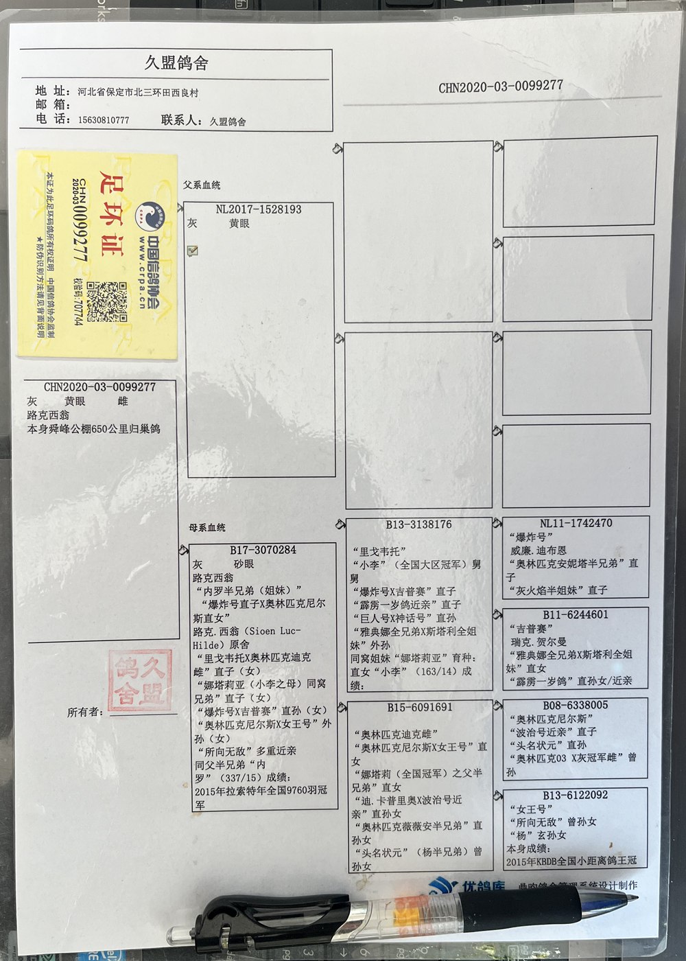 - 当前查看拍卖鸽:久盟鸽舍---路克西翁277 雌