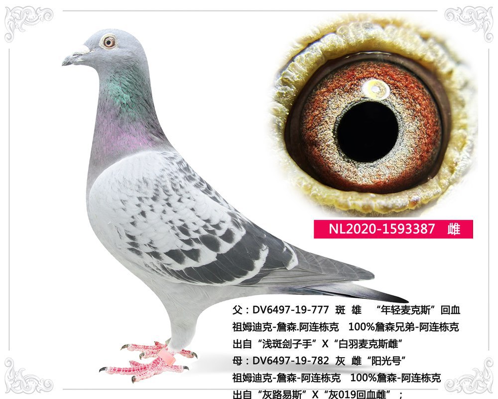 母:DV6497-19-782 灰 雌“阳光号” 祖姆迪克-詹森-阿连栋克 100%詹森-阿连栋克 出自“灰路易斯”X“灰019回血雌”;