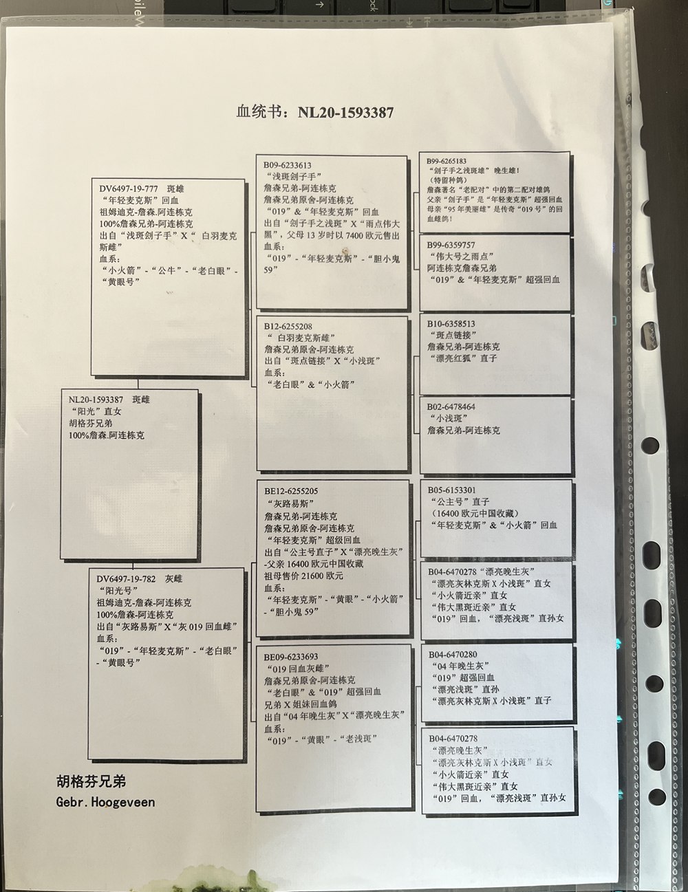 父:DV6497-19-777 斑 雄 “年轻麦克斯”回血 祖姆迪克-詹森.阿连栋克 100%詹森兄弟-阿连栋克 出自“浅斑刽子手”X“白羽麦克斯雌”