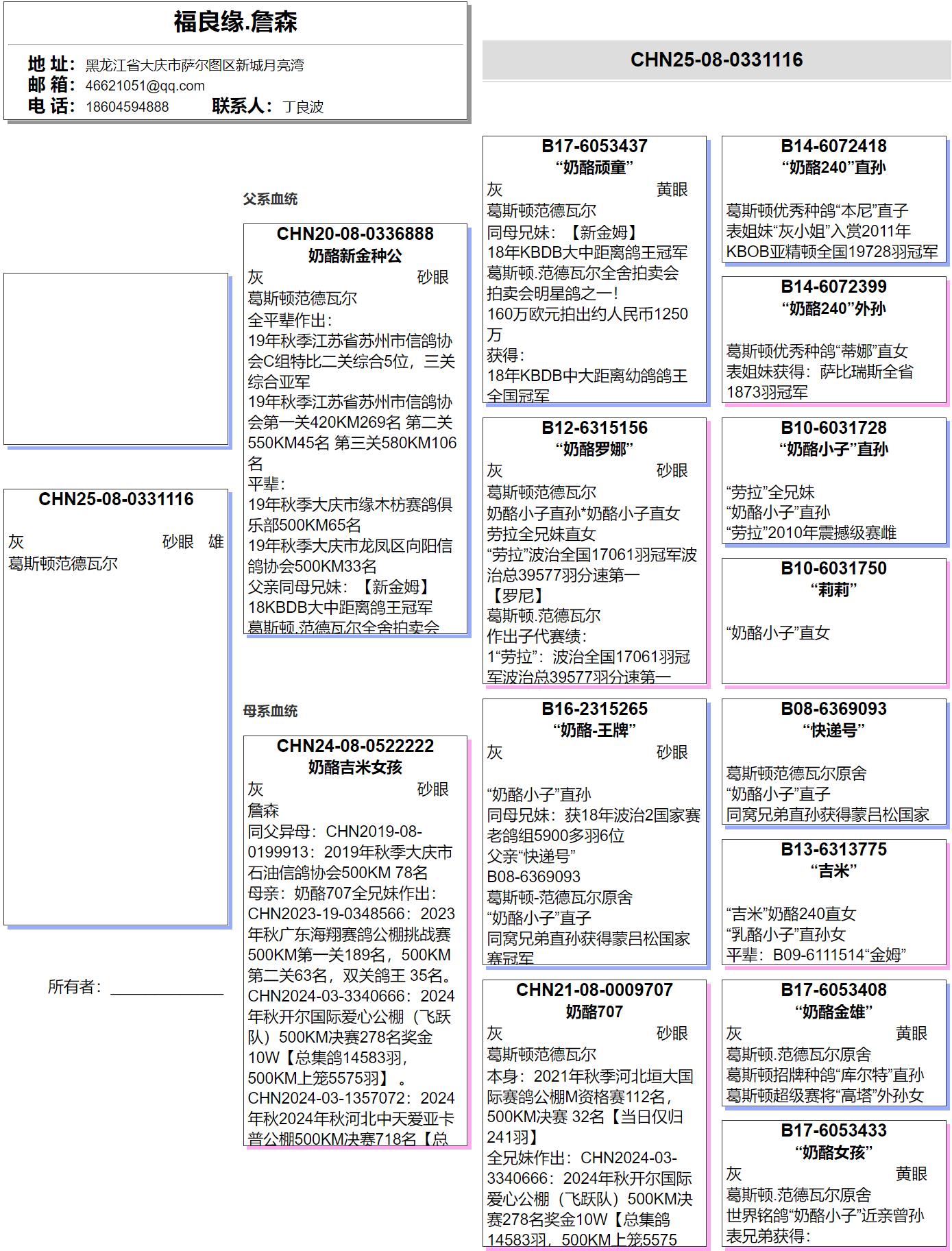 曾外祖父:B17-6053408 葛斯顿招牌种鸽