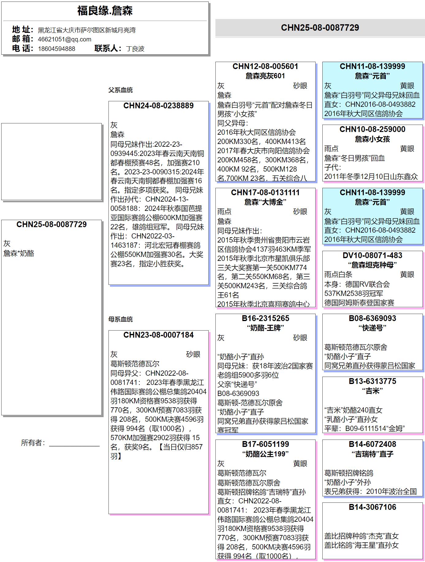 曾外祖父:B14-6072408 葛斯顿招牌铭鸽“奶酪小子”外孙