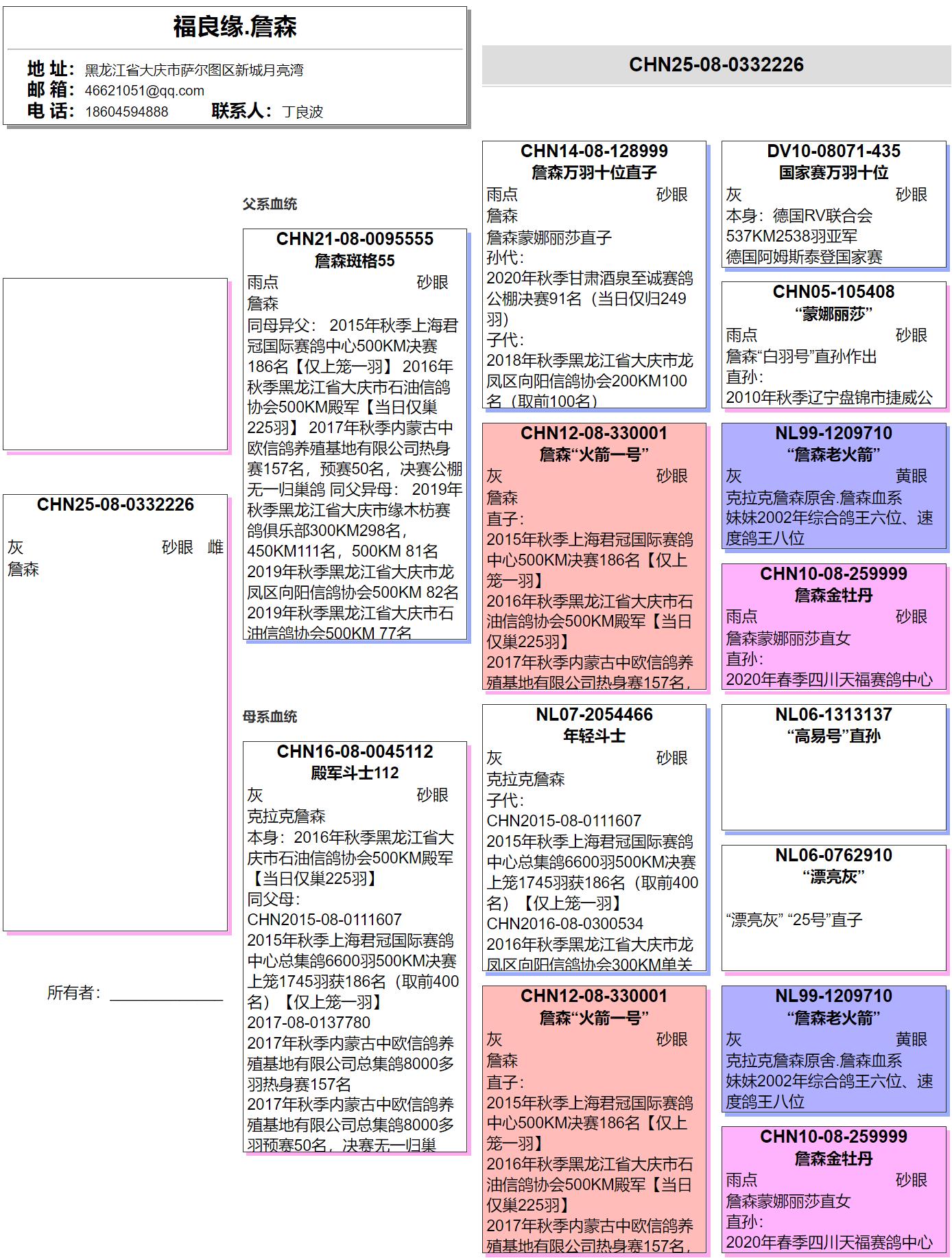 曾外祖母:金牡丹 CHN2010-08-259999 詹森白羽号回血