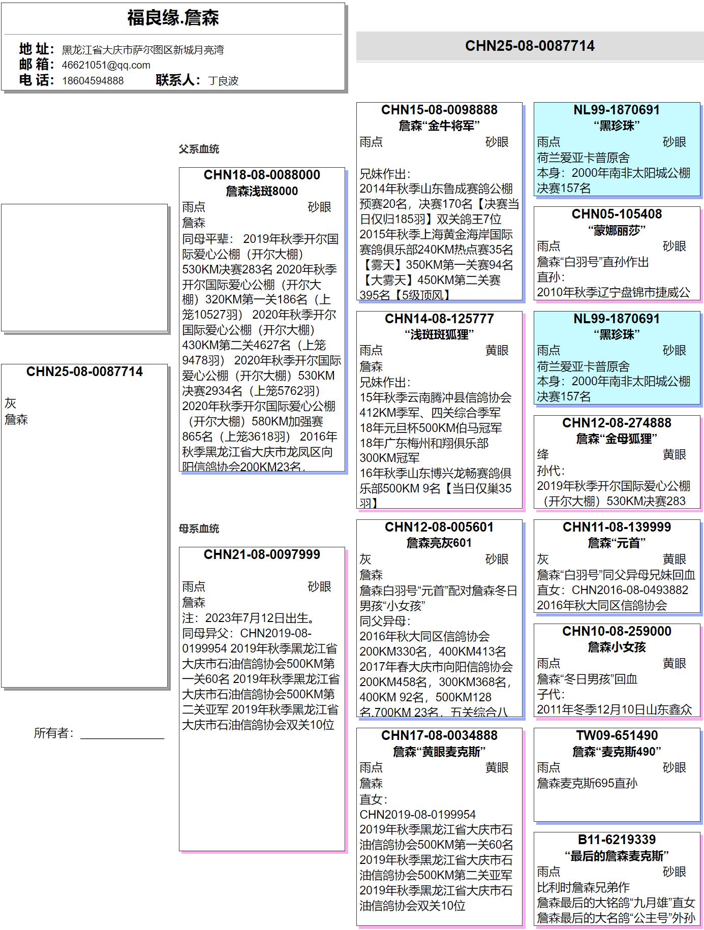 | 1617860 | 詹森鸽王双亚军/奶酪9名 | ¥1000元 | 0次 |