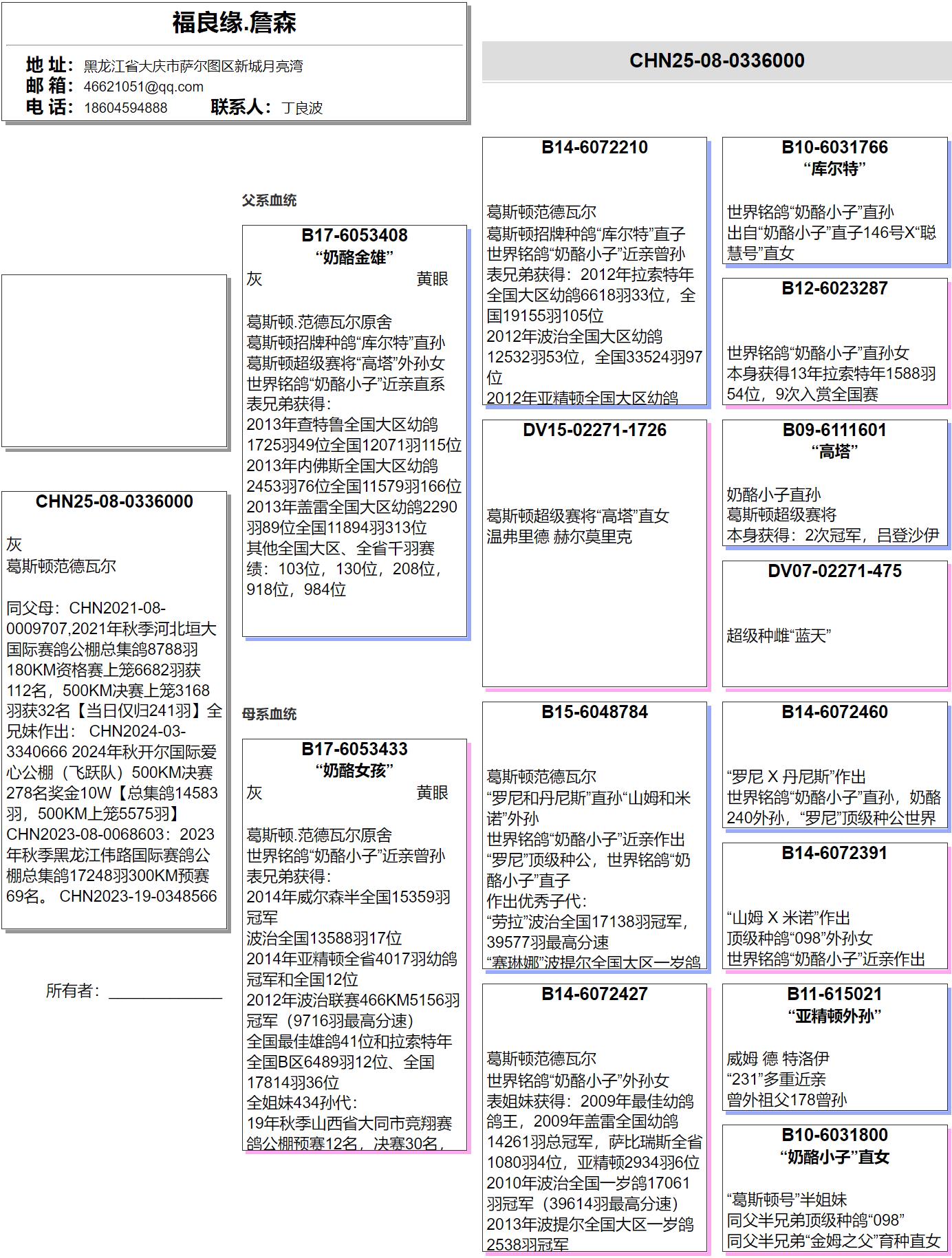 曾外祖母:B10-6031800 世界铭鸽“奶酪小子”直女