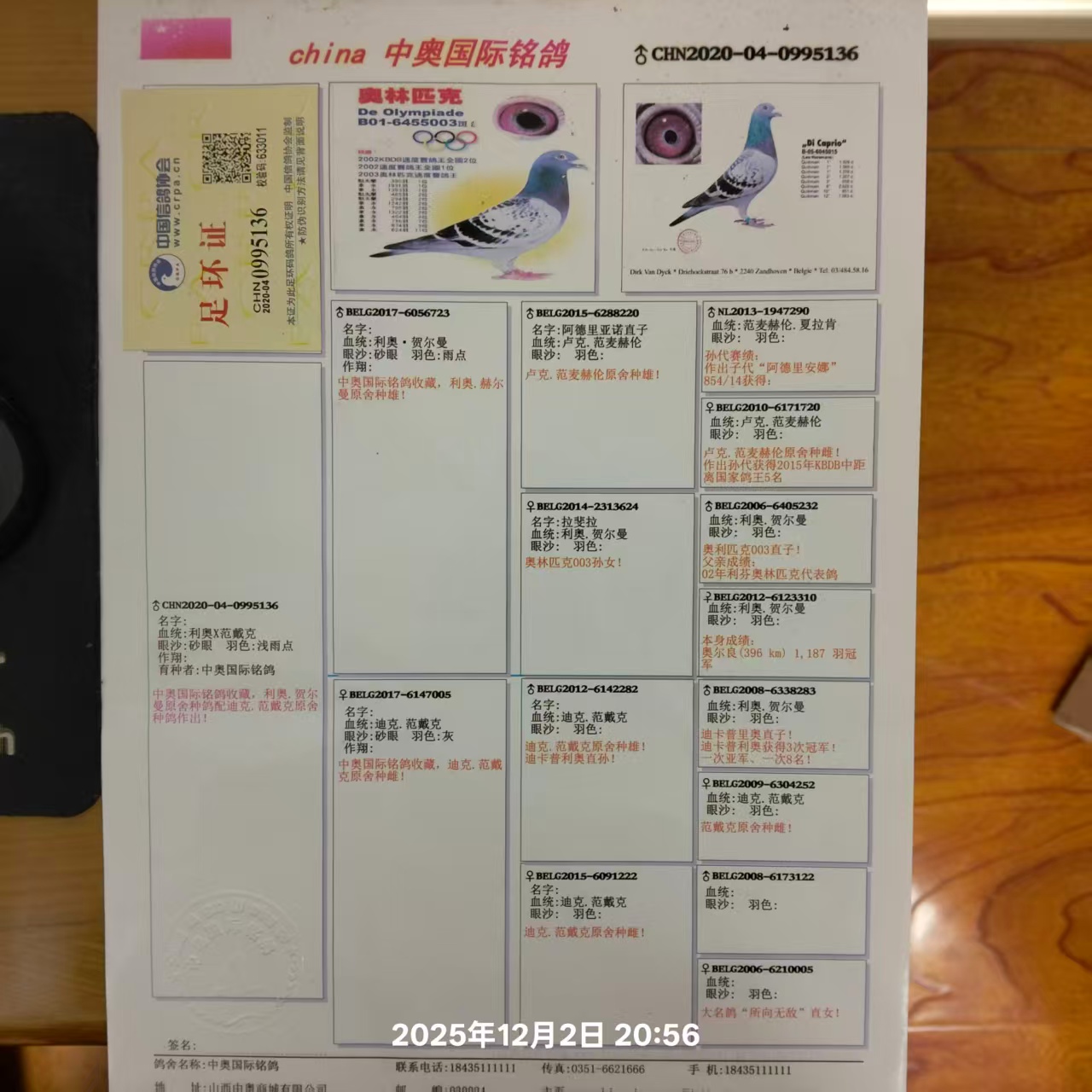 上传血统书的随鸽发出!!没有上传的不提供血统书!!介意勿拍!