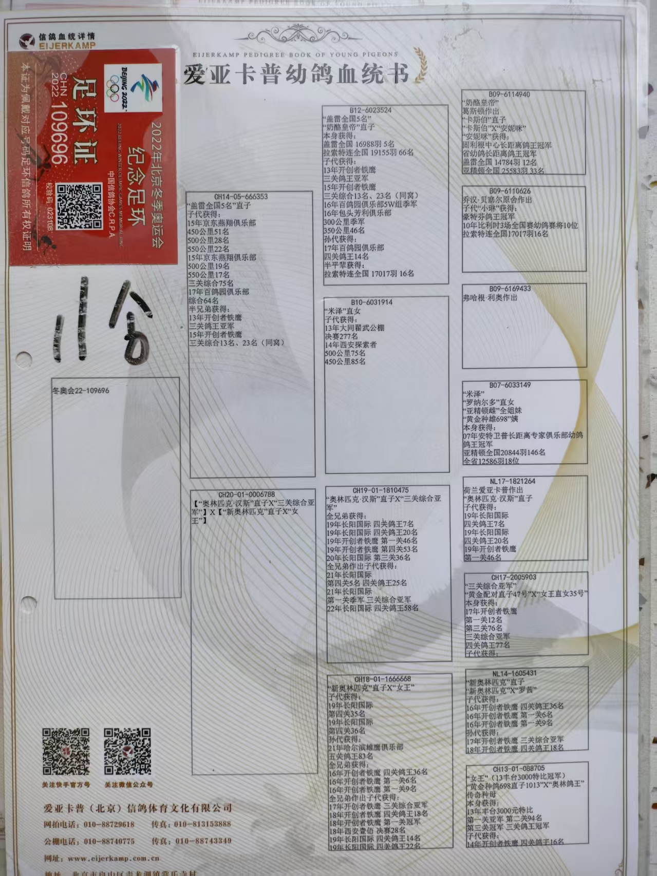 1618256 卡普黄金对孙代,做出3羽奖鸽 ¥5000元 0次