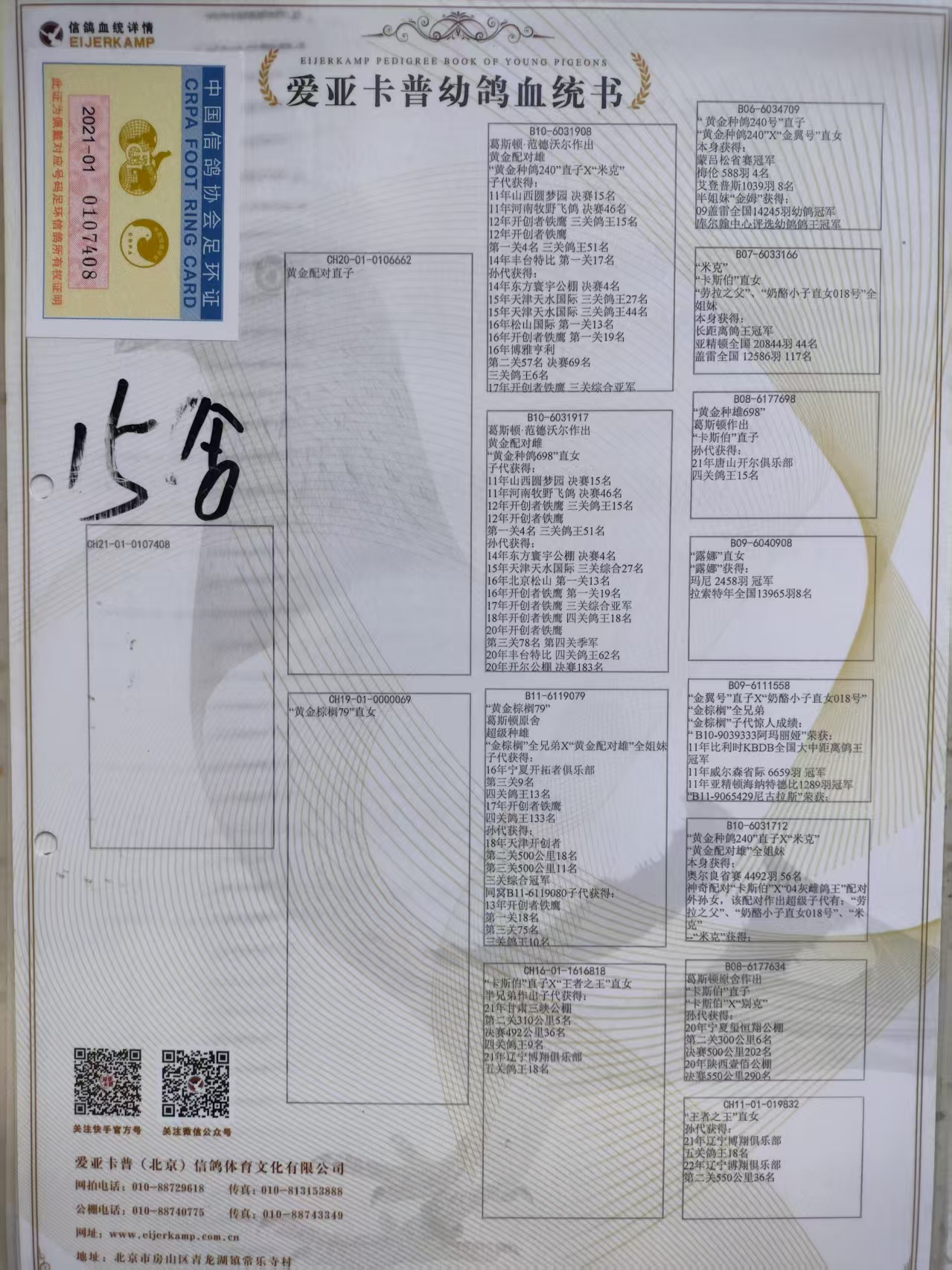 卡普黄金对孙代,做出3羽奖鸽