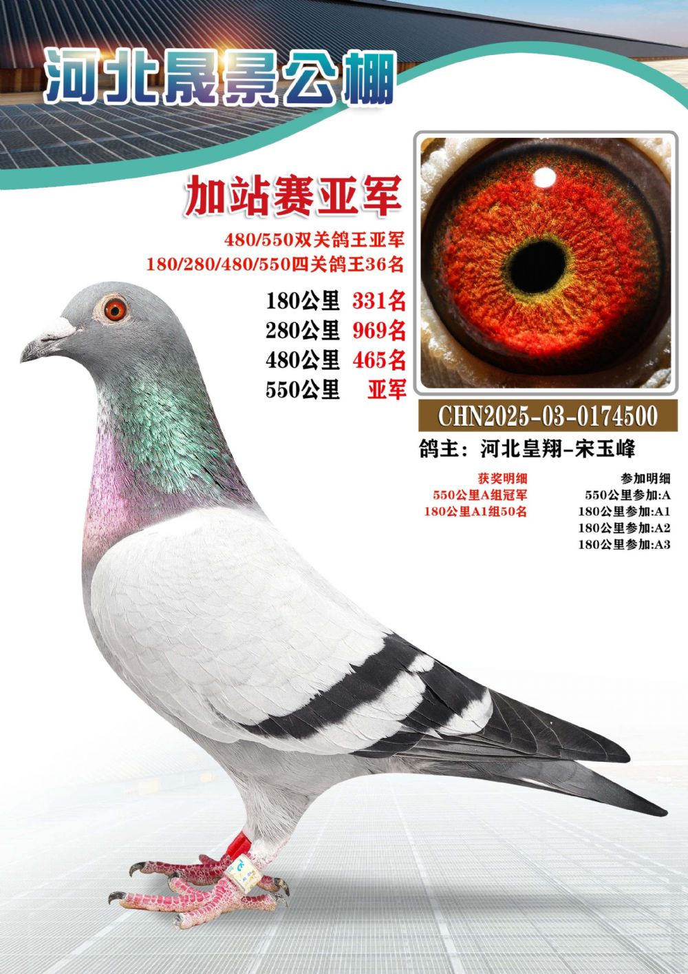 | 1618375 | 河北晟景加站赛冠军(双关鸽王季军,四关鸽王10名) | ¥1200元 | 2次 |