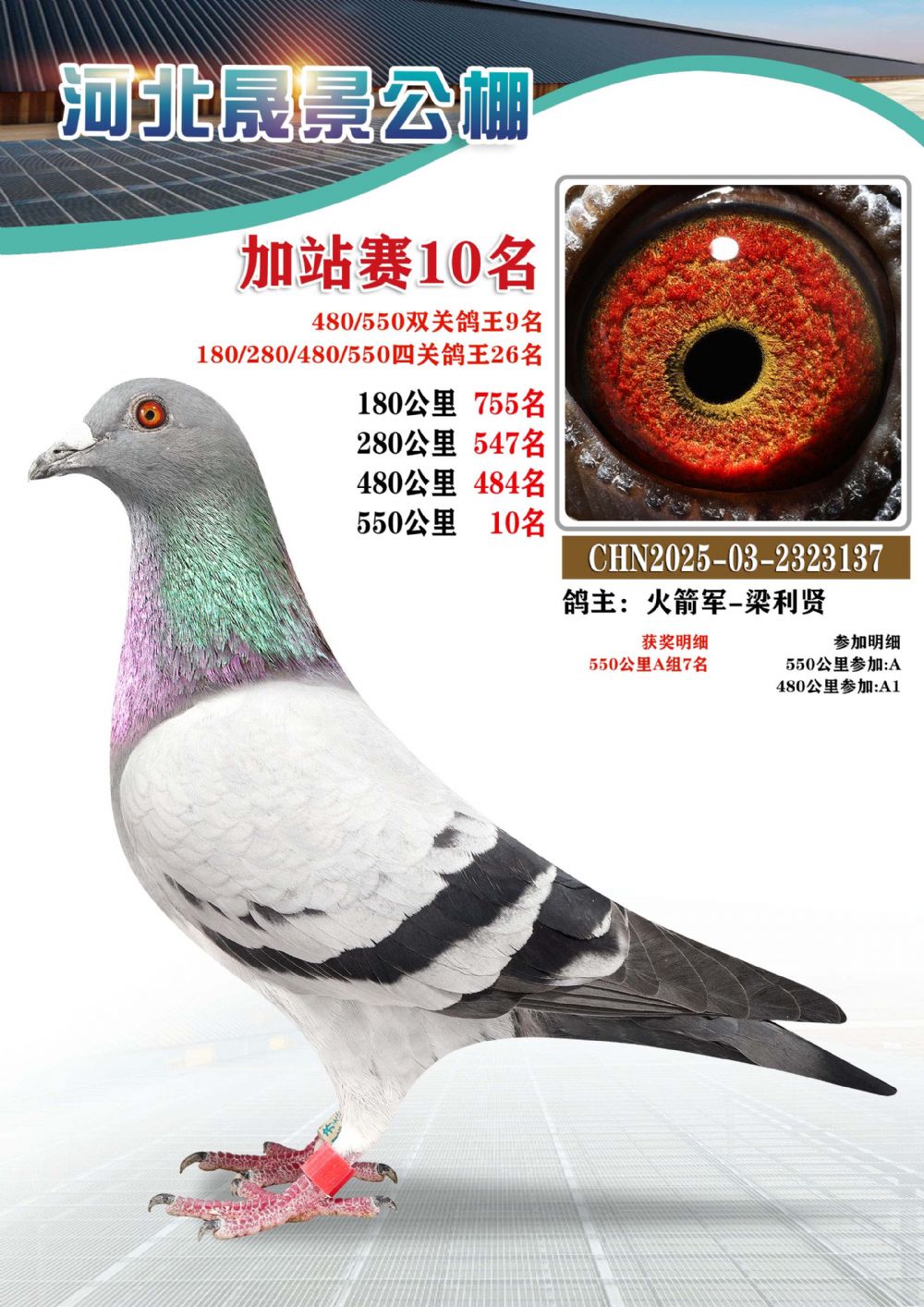 | 1618375 | 河北晟景加站赛冠军(双关鸽王季军,四关鸽王10名) | ¥1200元 | 2次 |