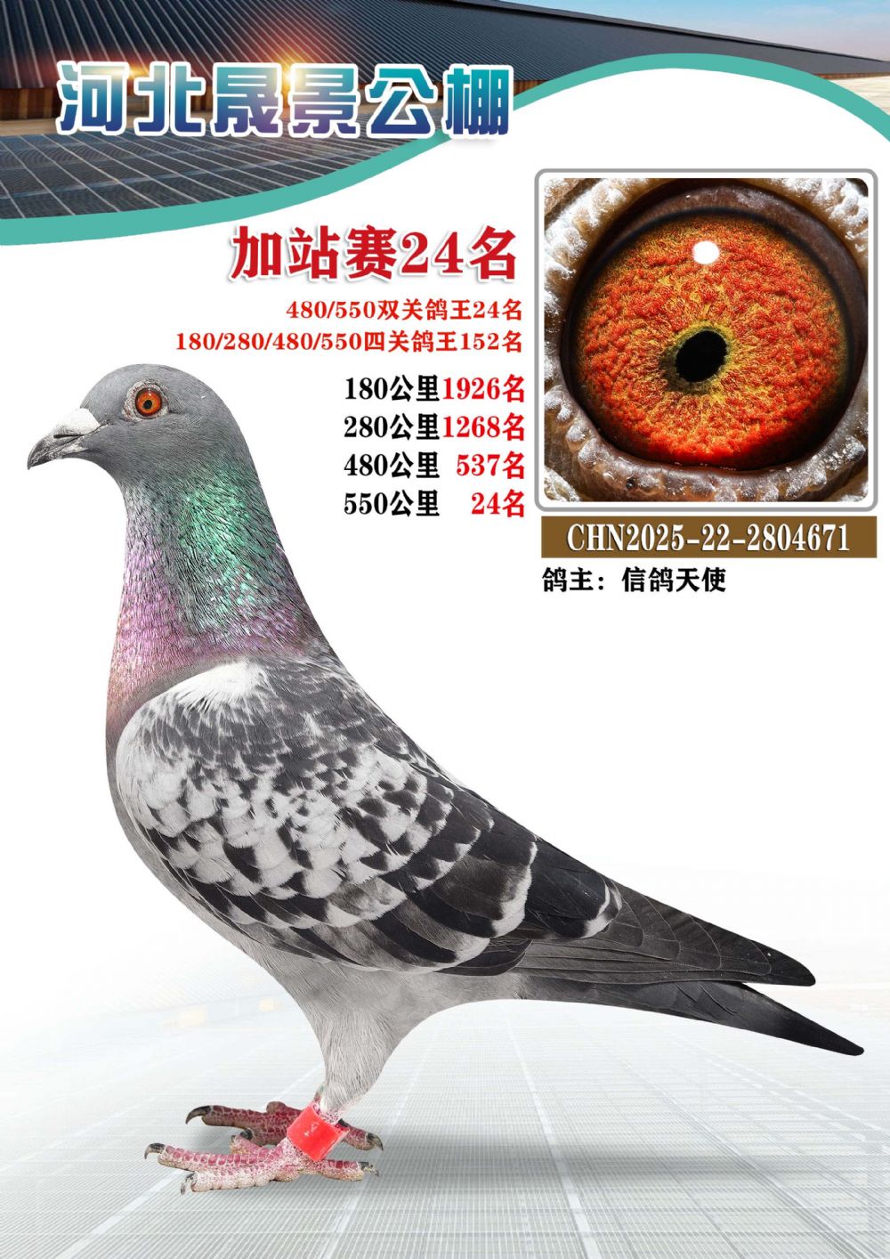 | 1618444 | 河北晟景加站赛70名(四关鸽王亚军) | ¥500元 | 2次 |