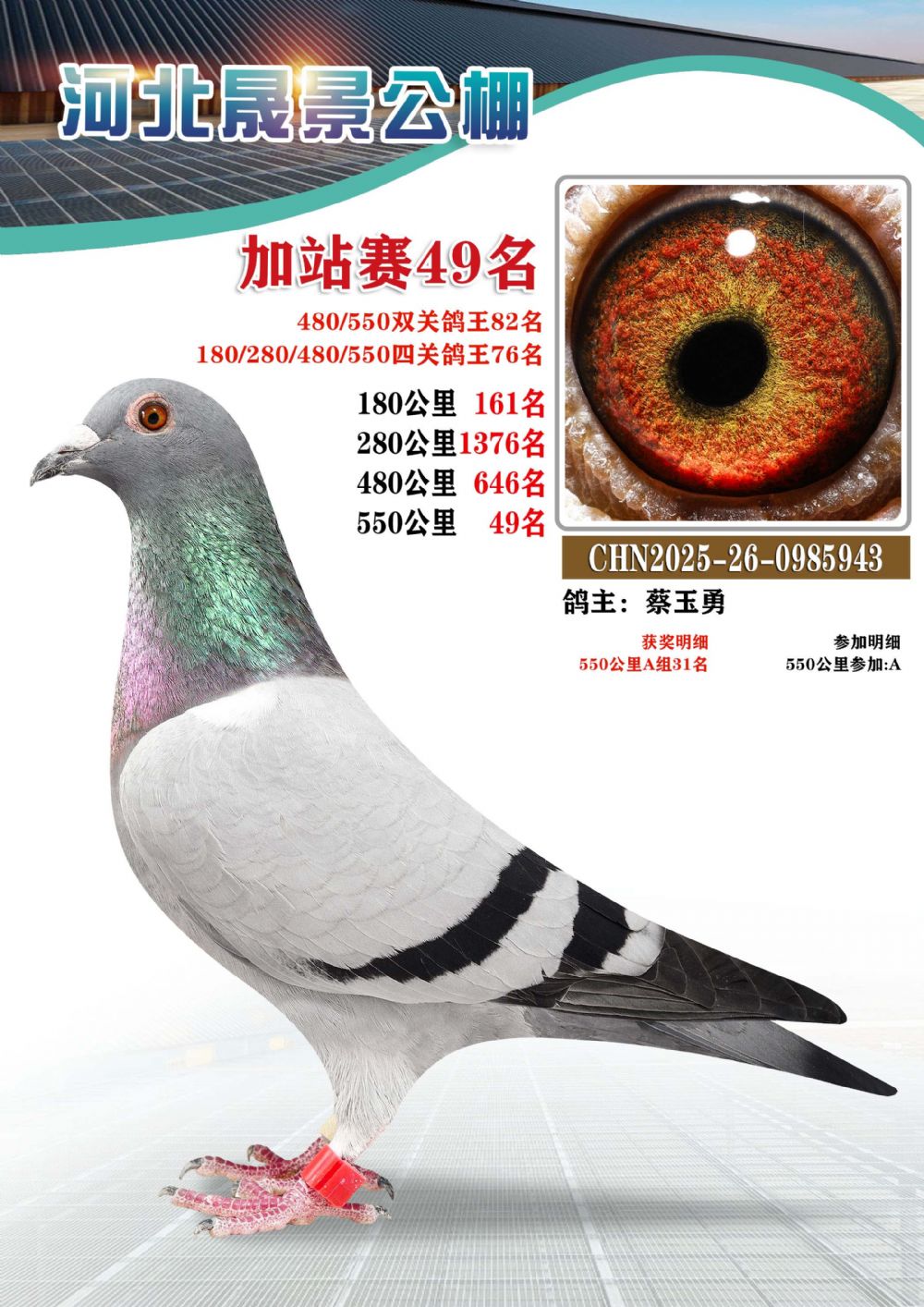 | 1618379 | 河北晟景加站赛5名(四关鸽王31名) | ¥500元 | 1次 |