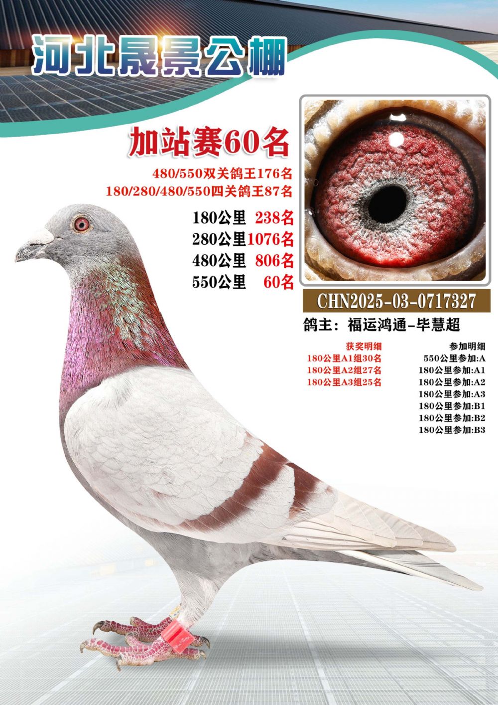 | 1618379 | 河北晟景加站赛5名(四关鸽王31名) | ¥500元 | 1次 |