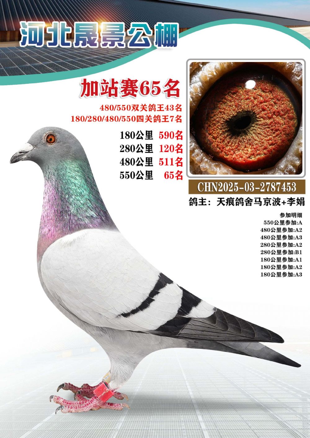 | 1618379 | 河北晟景加站赛5名(四关鸽王31名) | ¥500元 | 1次 |