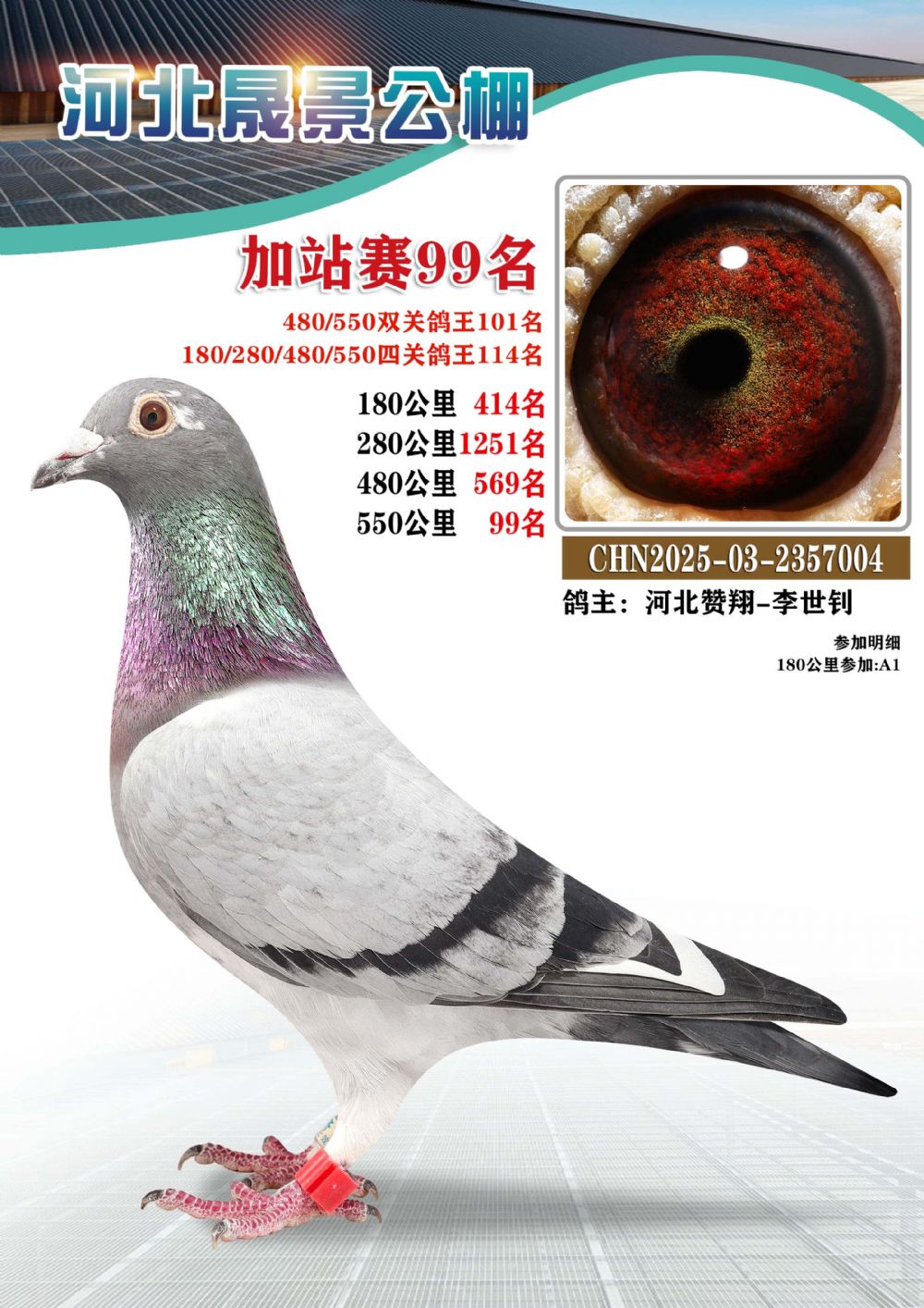 | 1618379 | 河北晟景加站赛5名(四关鸽王31名) | ¥500元 | 1次 |