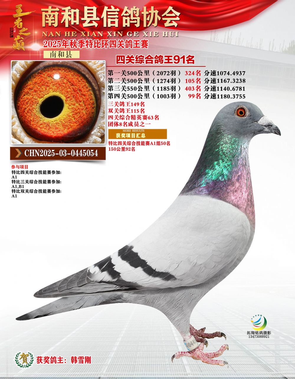 南和鸽协特比四关鸽王91名