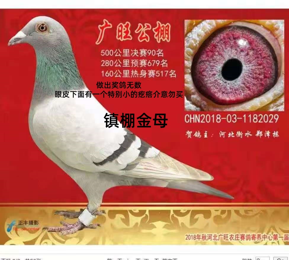 1618936 天津耐久能开创,镇棚金母,7羽获奖鸽缔造者 ¥2000元 0次