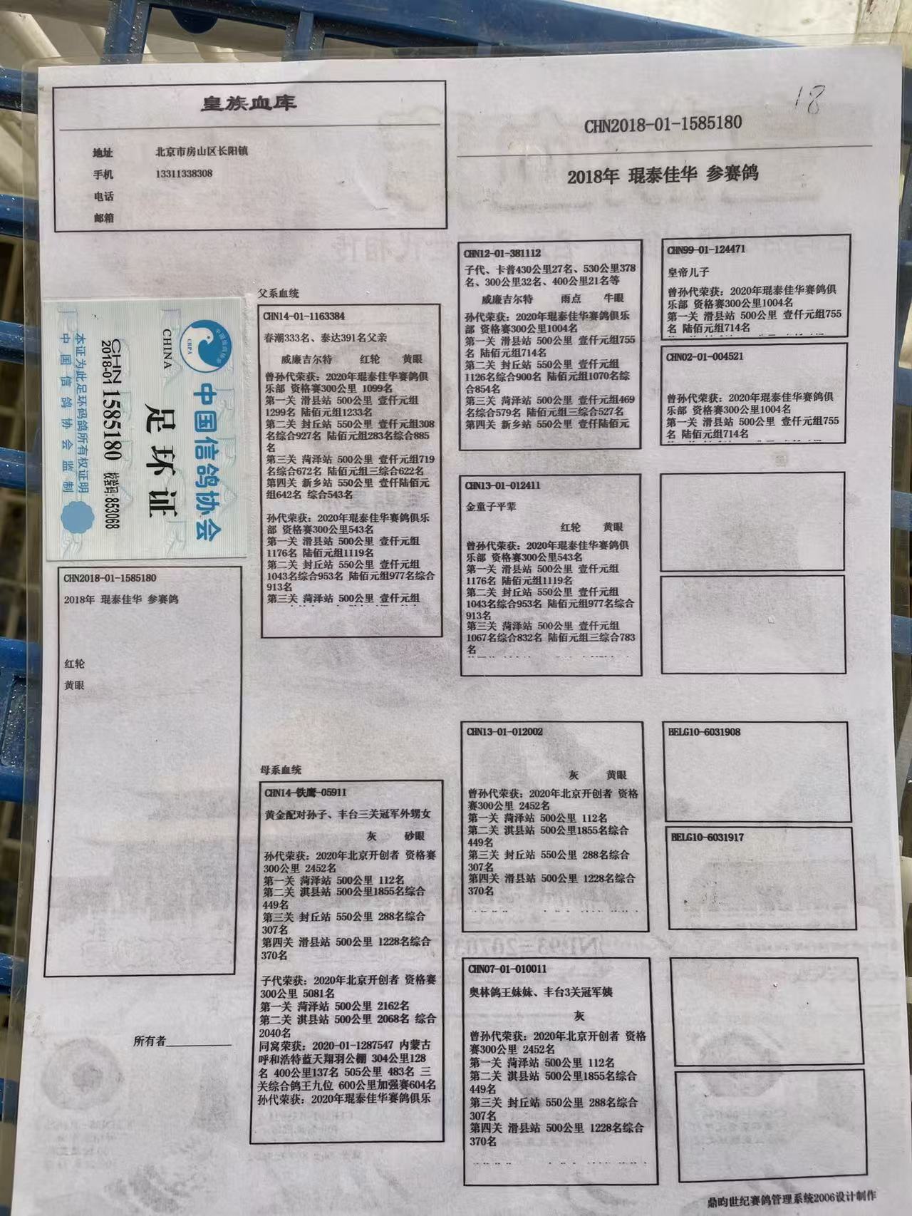 1618934 本身开创参赛鸽,广兴霍夫肯,2羽奖鸽缔造者 ¥1000元 0次