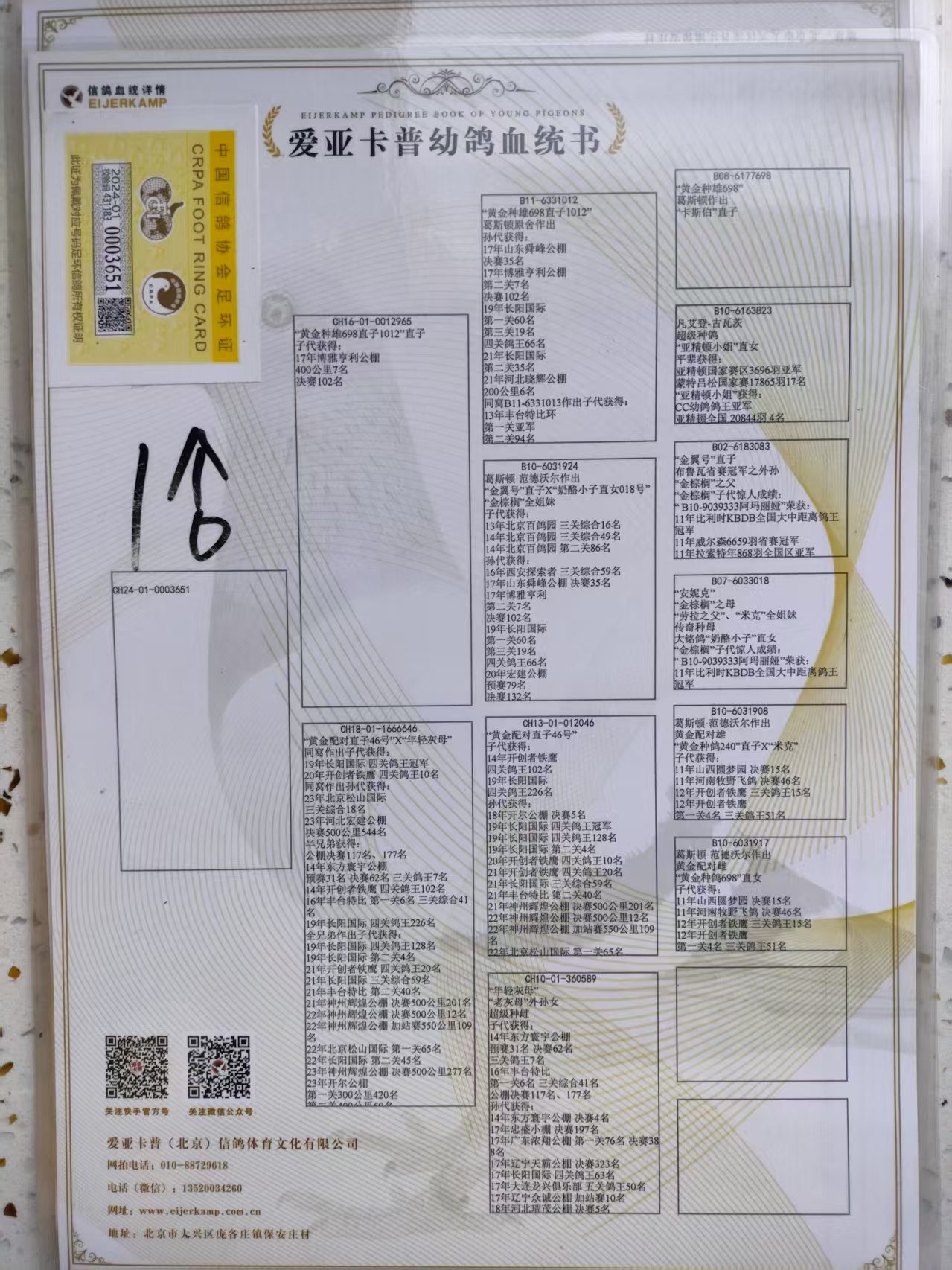 | 1618949 | 卡普黄金对孙代,做出3羽奖鸽401的同窝416 | ¥2000元 | 0次 |