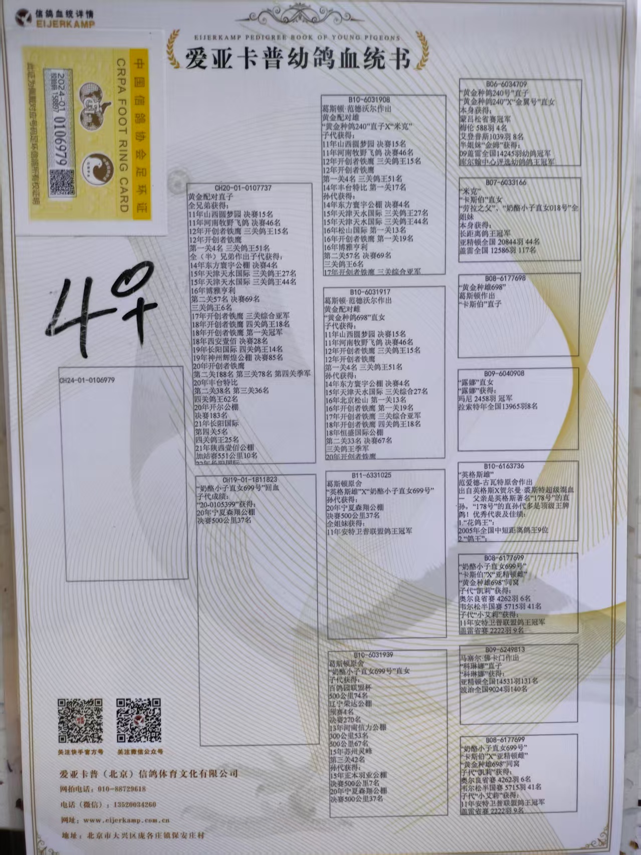 1618949 卡普黄金对孙代,做出3羽奖鸽401的同窝416 ¥2000元 0次