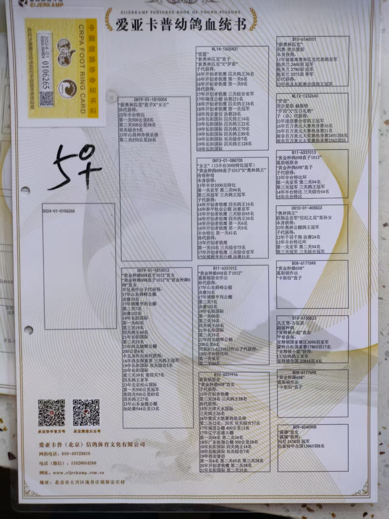 1618256 卡普黄金对孙代,做出3羽奖鸽 ¥5000元 0次