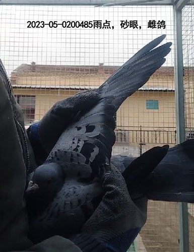 2023-05-0200485北国之春参赛鸽,雨点,砂眼,雌鸽,打完加站赛,与0200401和0200416同父母,上下窝,都是雌鸽