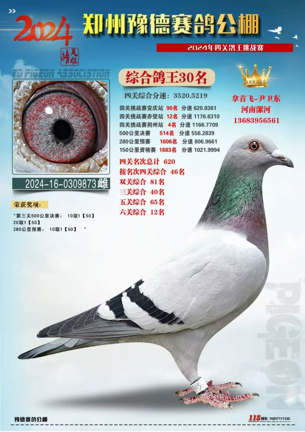 1618977 江盛源决赛146名,三关鸽王6名 ¥1000元 0次