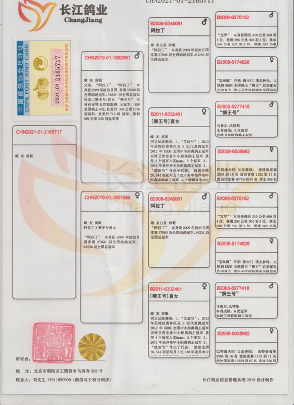 3、注明:请注意看种鸽和血统图片,有的种鸽环卡丢失,有些奖鸽无环卡和奖状和血统,介意请勿出价;