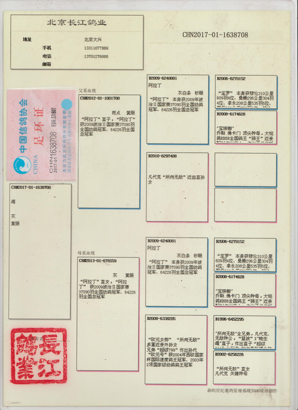 3、注明:请注意看种鸽和血统图片,有的种鸽环卡丢失,有些奖鸽无环卡和奖状和血统,介意请勿出价;