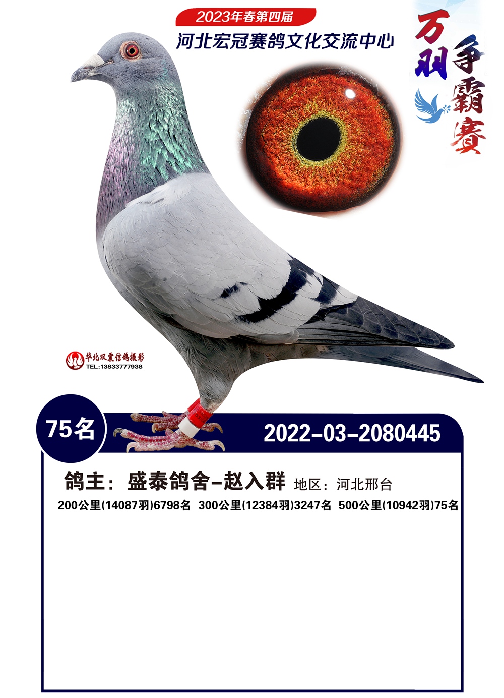 - 当前查看拍卖鸽:综合77名父亲(河北宏冠公棚决赛75名)