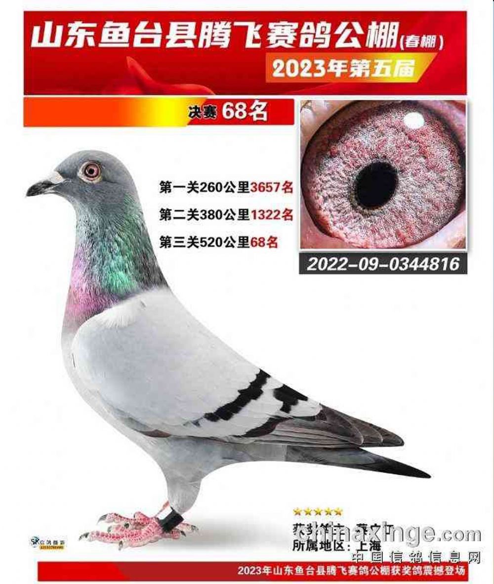 山东鱼台县腾飞赛鸽公棚 (春棚)520公里决赛68名