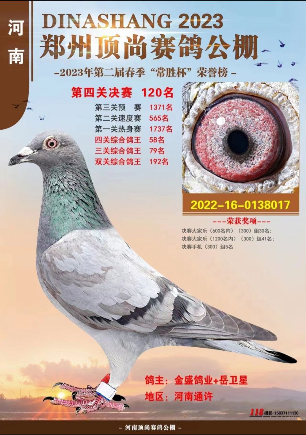 河南顶尚赛鸽公棚400公里预赛1371名;