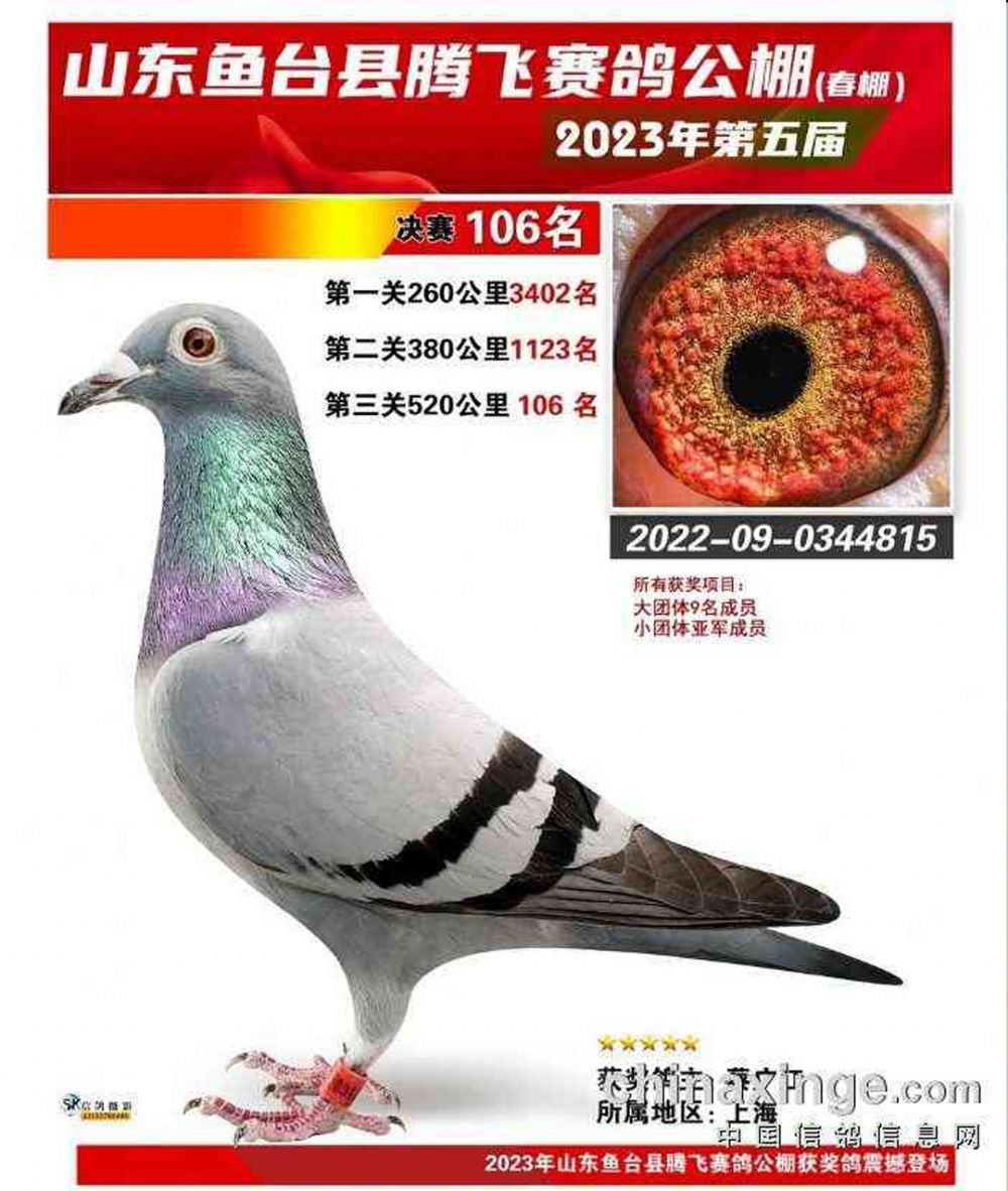 山东鱼台县腾飞赛鸽公棚 (春棚)520公里决赛106名