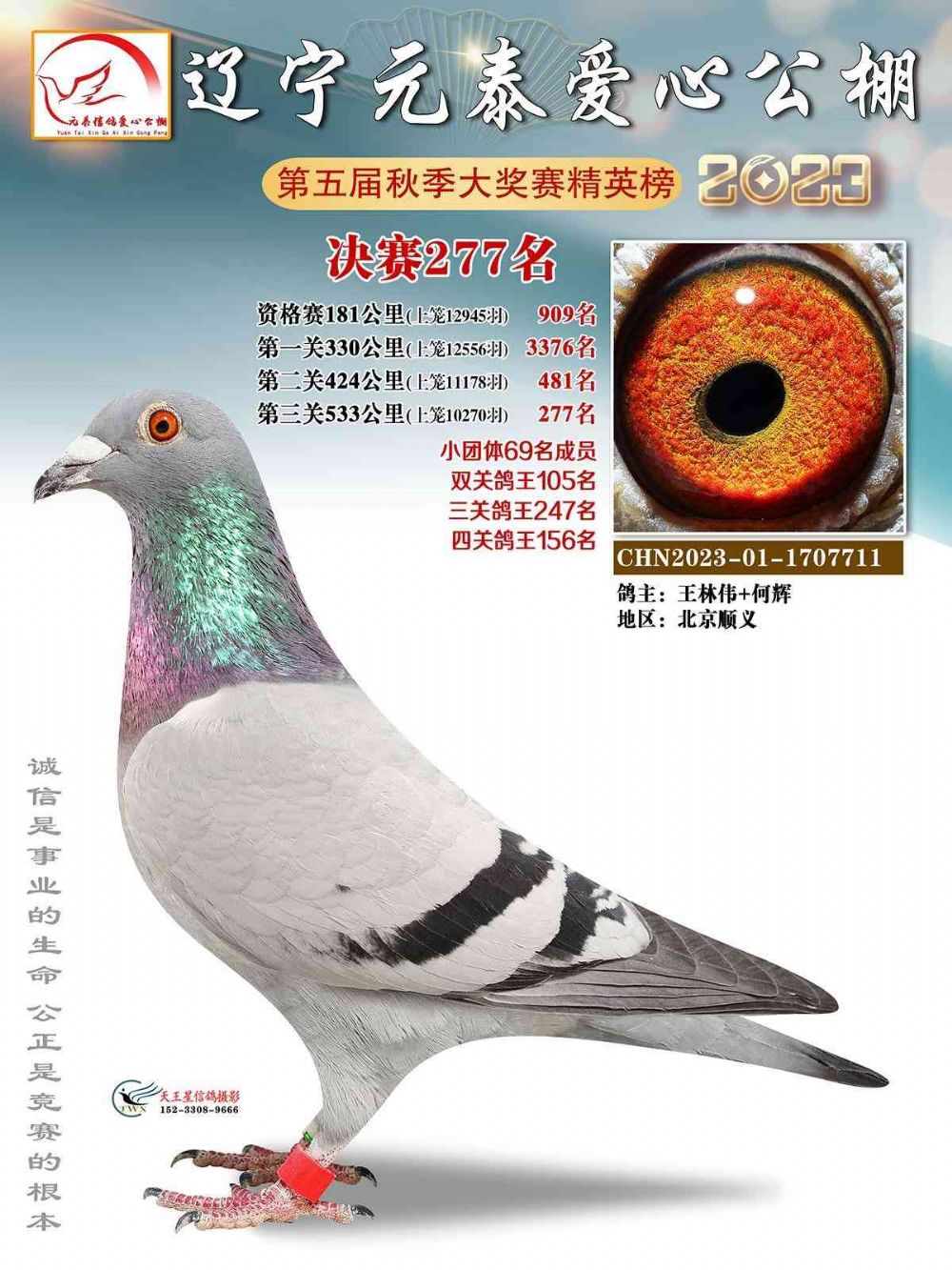 辽宁元泰爱心公棚双关鸽王105名 雌