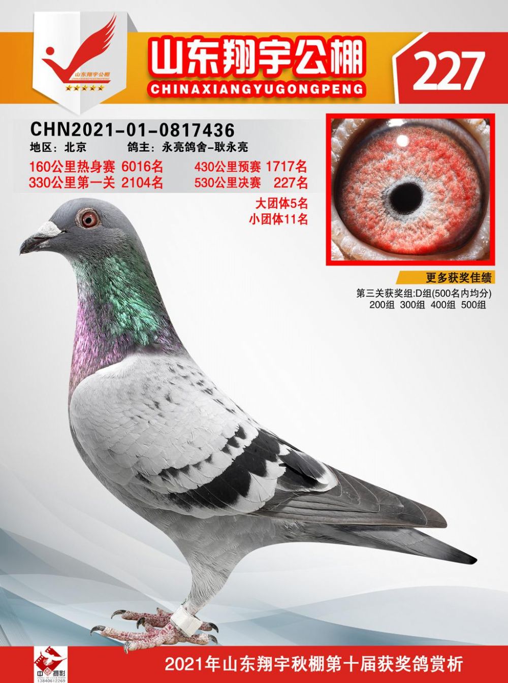 本身:山东翔宇赛鸽公棚160公里热身赛6016名;参与指定:5100元;