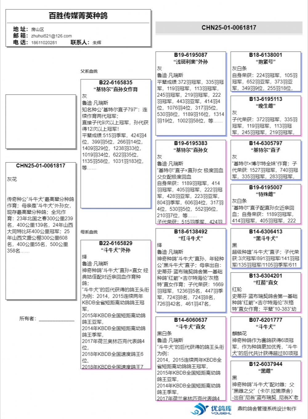 - 当前查看拍卖鸽:“斗牛犬”孙女作育 平辈多羽获奖-006