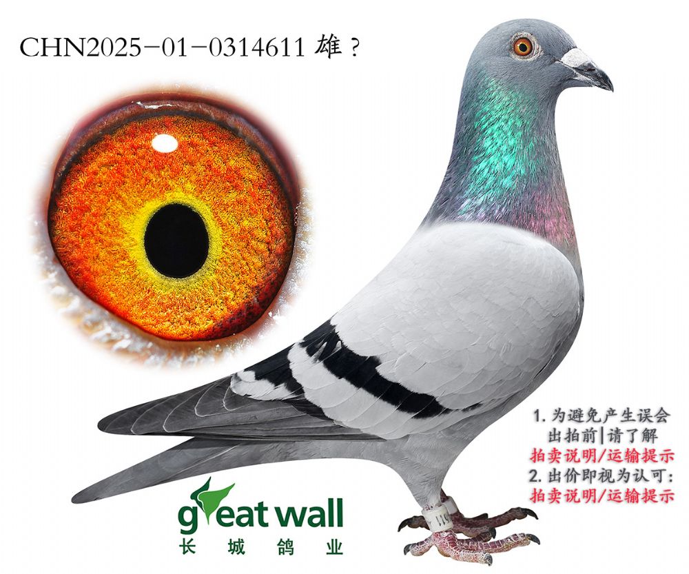 因拍卖鸽均是未做育过的种鸽或幼鸽,图内所标雌雄仅供参考,实际性别已实物为准。
