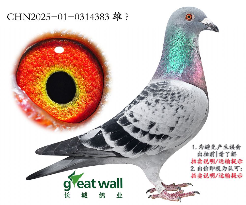 因拍卖鸽均是未做育过的种鸽或幼鸽,图内所标雌雄仅供参考,实际性别已实物为准。