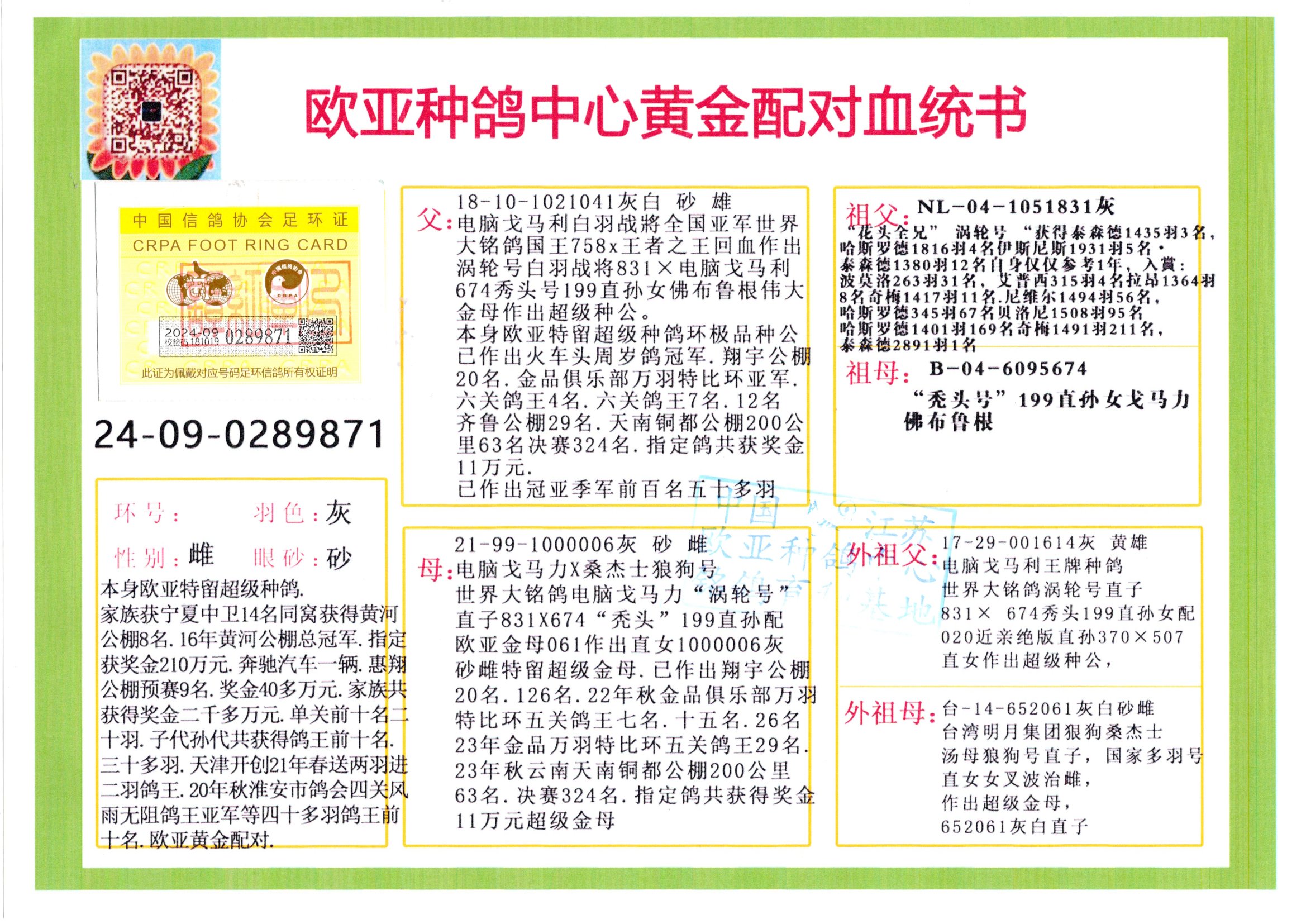 24年秋南京特比环欧亚荣获大团体冠军.小团体冠军551公里大特比13名.14名.16名.19名.20名.21名.24名.26名.27名.28名.42名.52名.54名.57名.65名.66名.68名.70名.71名.72名.74名.76名.80名.82名.83名.84名.85名.86名.90名.92名.110名.116名.121名.122名.128名.131名.158名.161名.164名.165名.166名.172名.174名.177名.182名.195名.196名.201名.205名.208名.210名.216名.253名.269名.275名.276名.294名.296名.299名,,24年秋云南天南铜都公棚决赛415名.天南铜都小棚决赛409名.云南玉活公棚决赛102名.490名.团体32名上笼二羽进二羽,天南铜都大棚506公里决赛445名。热烈祝贺河北省巨鹿县李兰生老师用欧亚泰山号血系连续十一年夺冠军,河北省国家赛冠军.全国季军等多次前十名高位,扬州王军王总用欧亚利奥24年春季获山东翔宇公棚决赛33名盖比53名。南京刘正龙刘总用欧亚盖比获得24年秋山东潍坊国际公棚决赛42名.精英赛30名.三关鸽王71名.决赛86名.加站赛16名.南京市特比环A组鸽王9名.B组鸽王5名.6名.C组鸽王5名.精英赛冠军4名.技能赛A组冠军4名.5名.秦淮区特比环荣获15名.46名.48名.87名。四川西昌徐亮徐总用欧亚利奥获得凉山州聚友决赛177名.第二关亚军双关鸽王19名.三关鸽王105名.云南豪庭公棚决赛603名。热烈祝贺24年四川重庆翔园鸽舍用欧亚泰山号荣获春季400公里冠军.秋季500公里冠军,河北王总用詹森X利奥获得千羽千翔公棚400公里冠军,广东蔡楷焕荣获24年秋爱好者 赛鸽俱乐部三关鸽王季军.一关420公里99名.二关450公里11名.三关520公里32名.单关季军.7名.12名,江西李卫兴荣获贵州红枫公棚8名.共翔俱乐部寄养棚四关综合鸽王30名.一关400公里78名.二关500公里55名.三关520公里37名.四关500公里57名.同父母获公棚18名.雷鸣获得武汉黄浦育翔中心冠军,四川陈文获得四川明鸿俱乐部300公里梦幻2名.3名.4名.9名.10名.13名.14名.15名.31名.34名.40名.41名.42名.43名.69名.71名.72名.73名.74名.94名.95名.97名.98名.99名.419公里决赛荣获总冠军7名.总共归巢9羽,四川徐亮获豪庭决赛603名,山西郑勇获得山西泰鑫公棚决赛255名詹森红狐,热烈祝贺马总获得开尔(飞跃队)决赛9名获奖金1310000万元.第一关52名,天津津福资赛180公里96名.获奖金429543万元,欧亚支持全国鸽友24年秋多人报喜 祝大家取得更好成绩,给欧亚报喜鸽友欧亚决定给每人赠送一羽超级种鸽。欧亚俱乐部特比环多关鸽王成绩:15年秋淮安特比环黑色星期一全会上笼9700多羽,当天无鸽归巢,第二天全会归巢357羽,本舍归巢158羽.前十名八羽.前一百名归巢57羽,16年春季获五关鸽王总冠军,总亚军四名.六名.七名.九名.十名.晶艺俱乐部520公里冠亚季军5名.6名.7名.9名.11名等,火车头冠军.季军6名.8名.9名.10名,16年秋晶艺俱乐部特比环520公里亚军.季军4名.6名.7名.9名,15年春南京白下特比环冠军.亚军.季军6名.7名.8名.9名.10名.指定鸽A B组获得冠军.亚军.季军4名.5名.,17年淮安特比环亚军.4名.5名.7名.8名.10名.六关鸽王总冠军.4名.6名.9名.10名,寄养棚宿迁刘总20羽特比环获冠军.季军.4名.7名.8名.9名等。18年荣获万羽特比环六关鸽王总冠军.总亚军.总季军.6名.8名.十名.单关四羽冠军.二羽亚军.四羽季军.前十名27羽。19年秋万羽特比环六关鸽王总亚军.总季军.5名.8名等,单关二羽冠军.三羽亚军.一羽季军前十名31羽。20年秋淮安市鸽会四关特比环大赛风雨无阻鸽王亚军.鸽王六名,金品俱乐部万羽特比环六关鸽王总冠军,总亚军.四名.五名.六名.七名.八名.十名.前二百名鸽王35羽,单关冠亚季军前十名四十多羽,火车头五关鸽王季军.六名.八名.前二百名鸽王十七羽。20年春荣获淮安五区一市四关鸽王总冠军.亚军.四名.八名.九名。21年秋荣获金品万羽特比环大赛六关鸽王总亚军.总季军.四名.七名.九名.十名.单关冠亚军季军前十名三十多羽。火车头协会鸽王六名.七名.十名.单关前十名十七羽。22年秋荣获鸽王总冠军.总亚军.5名.7名.8名.9名.11名.单关冠亚季军前十名三十多羽,第一关单关前二百名四十多羽,第二关前二百名三十多羽,第三关前二百名四十多羽,第四关前二百名四十多羽,第五关前一百名53羽。23年秋荣获鸽王季军.五名.八名.十名.13名.17名.20名.27名等多羽鸽王.单关前十名二十多羽。公棚.寄养棚部分成绩:16年秋宁夏黄河公棚总冠军电脑戈马力指定通炮冠军,17年送八羽参赛获得鸽王八名进奖四名,支持韩总荣获八名。支持鸽友荣获宁夏中卫公棚决赛总冠军.精英赛冠军,支持18年宁夏黄河公棚决赛冠军詹森X泰山。安徽鼎博寄养棚院内外四关鸽王总冠军.鸽王十七名.三十七名同窝,鸽王39名.42名.58名.67名。18年山东公棚预赛冠军.决赛65名.送八羽进奖五羽.指定获奔驰汽车一辆。支持鸽友获得云南蓝云公棚冠军.盖比X佛卡门。支持鸽友荣获云南银集公棚决赛冠军 詹森427X520血系 速度赛6700羽冠军。17年荣获金马俱乐部寄养棚四关鸽王总冠军.季军.六名.八名.第一关冠军.亚军.季军四名.七名.十一名.金牌教练奖。支持鸽友18年北京费翔公棚预赛九名电脑X桑杰士,支持鸽友荣获陕西威力公棚决赛11名.内蒙古临河寄养棚四关鸽王六名.詹森配泰山,支持河北王总用欧亚詹森427配胡本喜获20年秋开尔青年棚季军。云南东荣公棚16年预赛冠军.决赛77名.17年决赛12名.詹森红狐X泰山,17年平安公棚决赛4名 詹森427。欧亚获得21年金母寄养棚第一关四名.第二关5名.第三关5名.6名.7名.10名.三关鸽王总冠军,四关鸽王14名.十羽鸽王。支持河