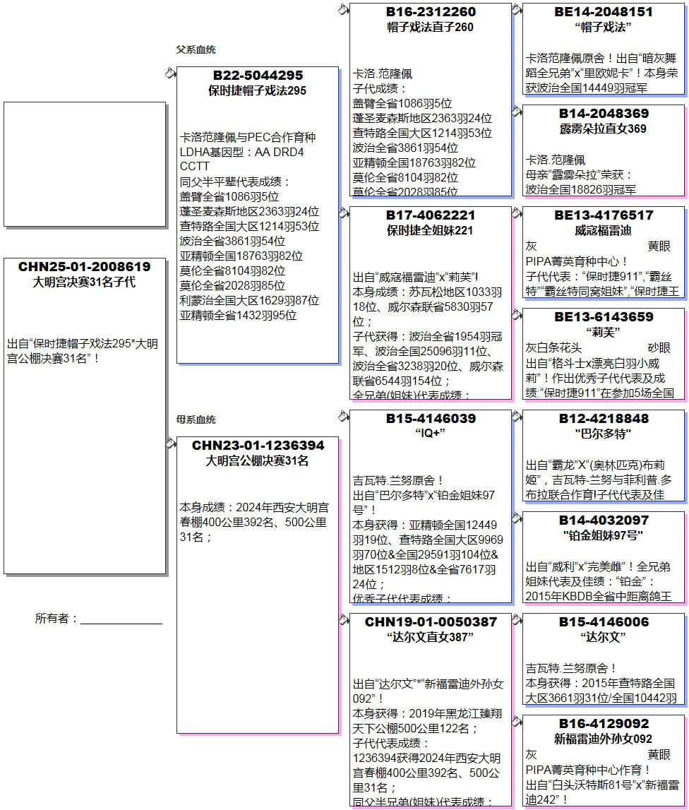 因拍卖鸽均是未做育过的种鸽或幼鸽,图内所标雌雄仅供参考,实际性别已实物为准。