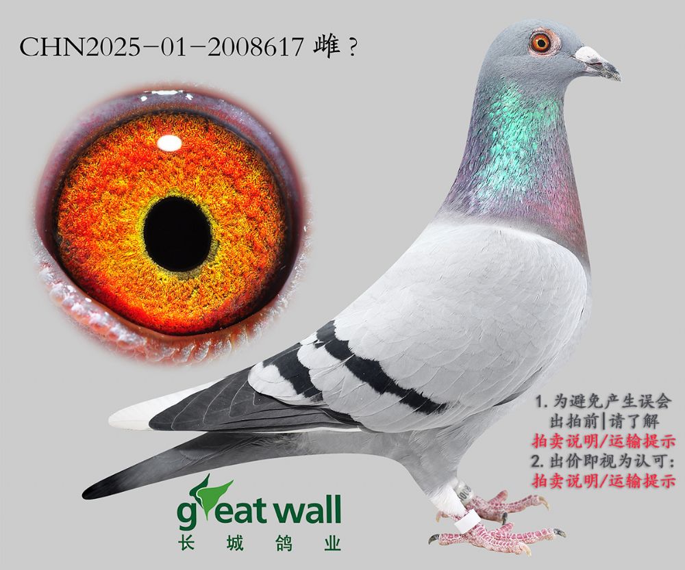 因拍卖鸽均是未做育过的种鸽或幼鸽,图内所标雌雄仅供参考,实际性别已实物为准。