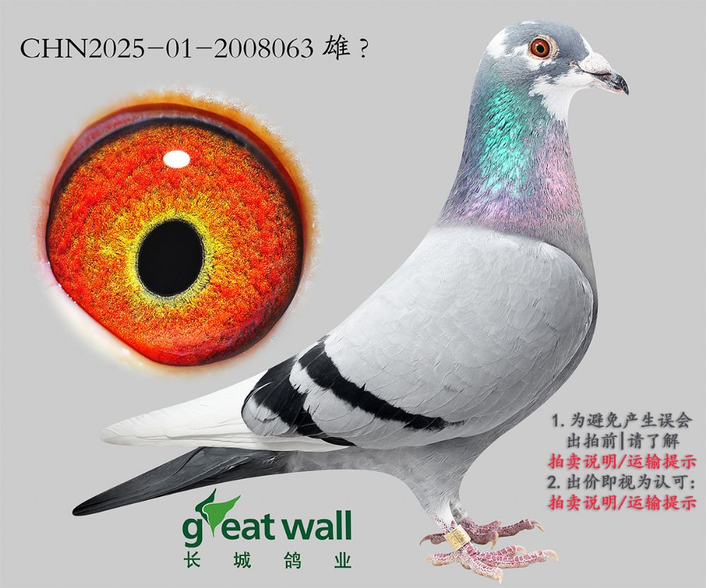 因拍卖鸽均是未做育过的种鸽或幼鸽,图内所标雌雄仅供参考,实际性别已实物为准。
