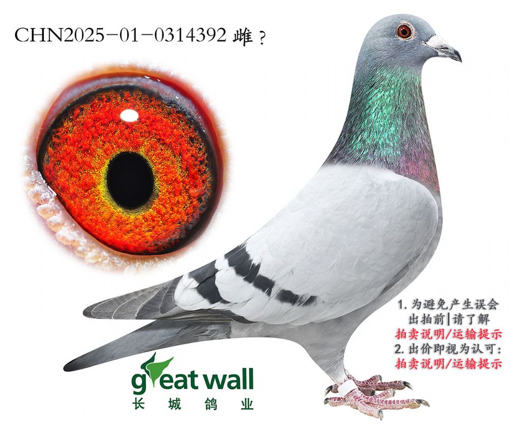 因拍卖鸽均是未做育过的种鸽或幼鸽,图内所标雌雄仅供参考,实际性别已实物为准。
