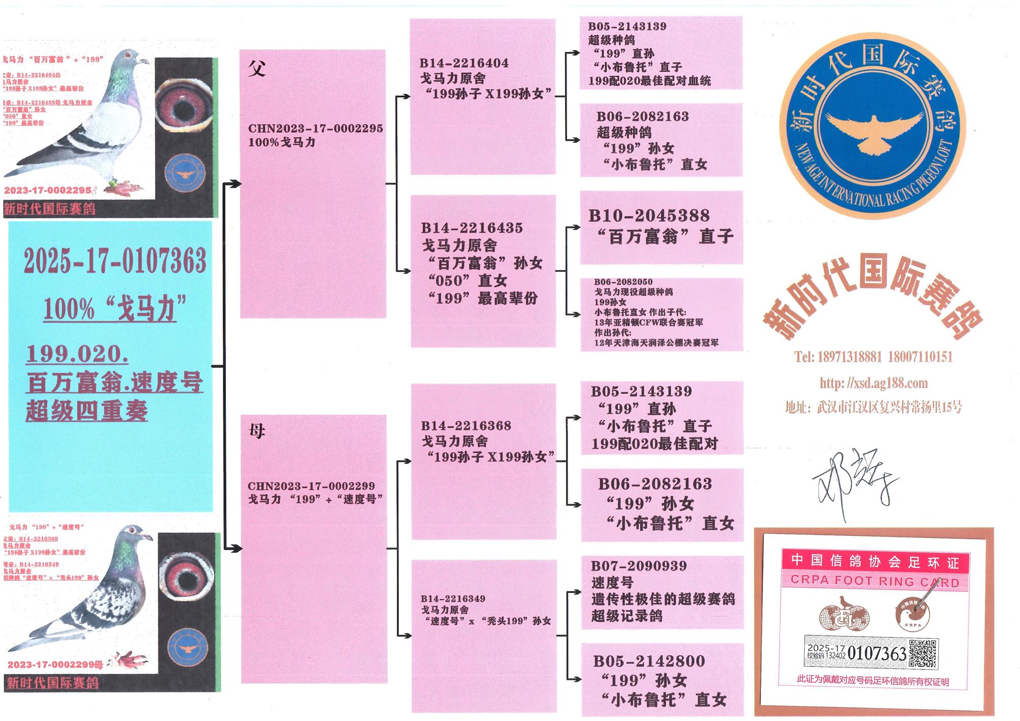 戈马力招牌鸽“速度号”x “秃头199”孙女
