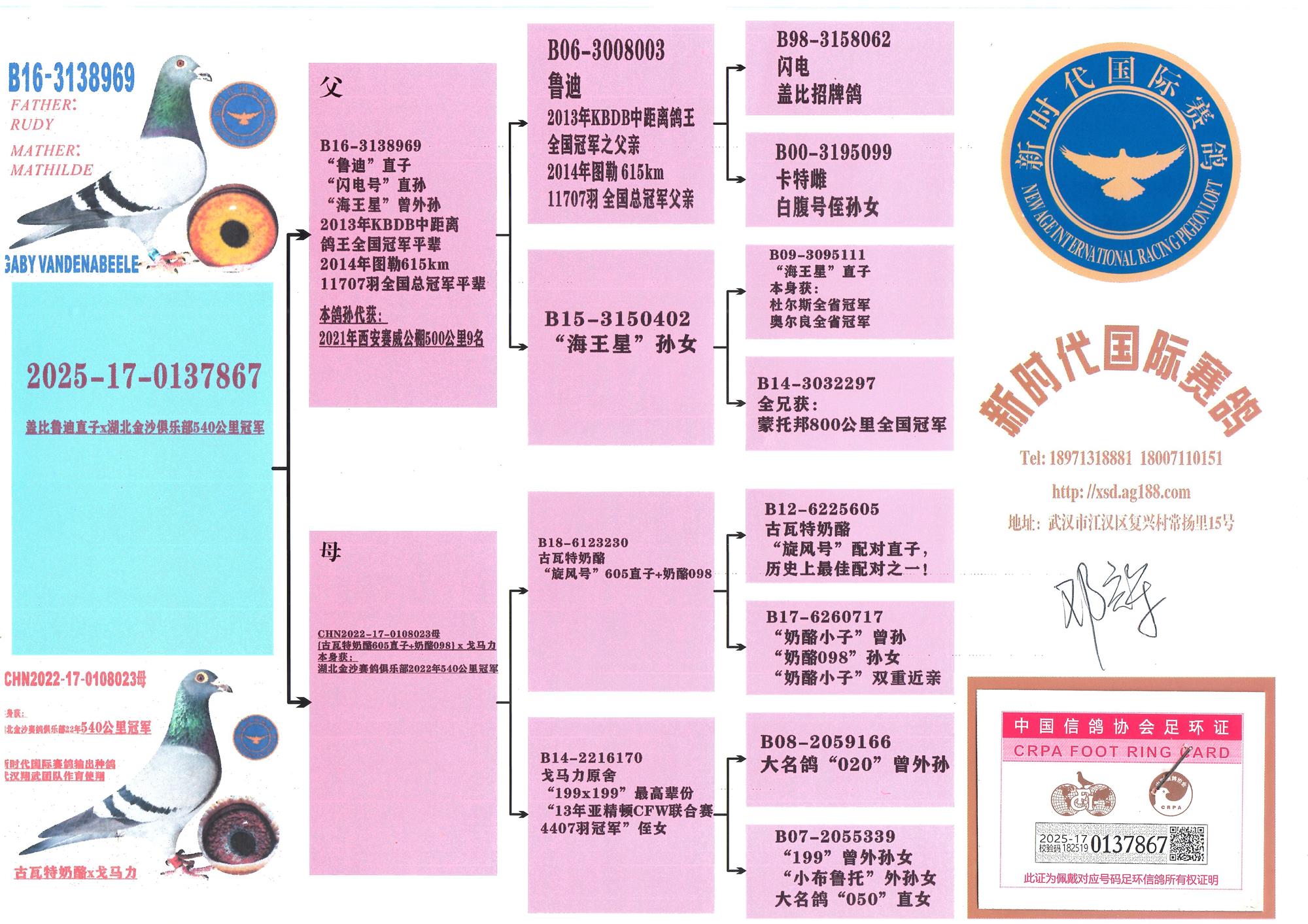 盖比《鲁迪》直子 x 湖北金沙赛鸽俱乐部540公里冠军