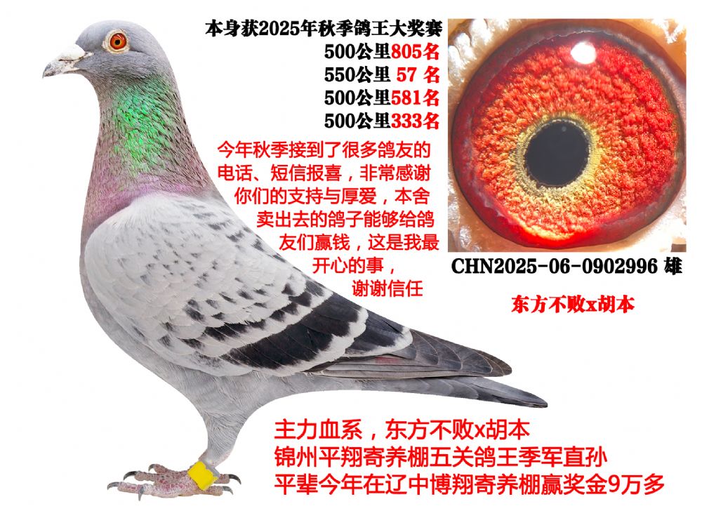 - 当前查看拍卖鸽:东方不败x胡本(本身4次500公里成绩鸽