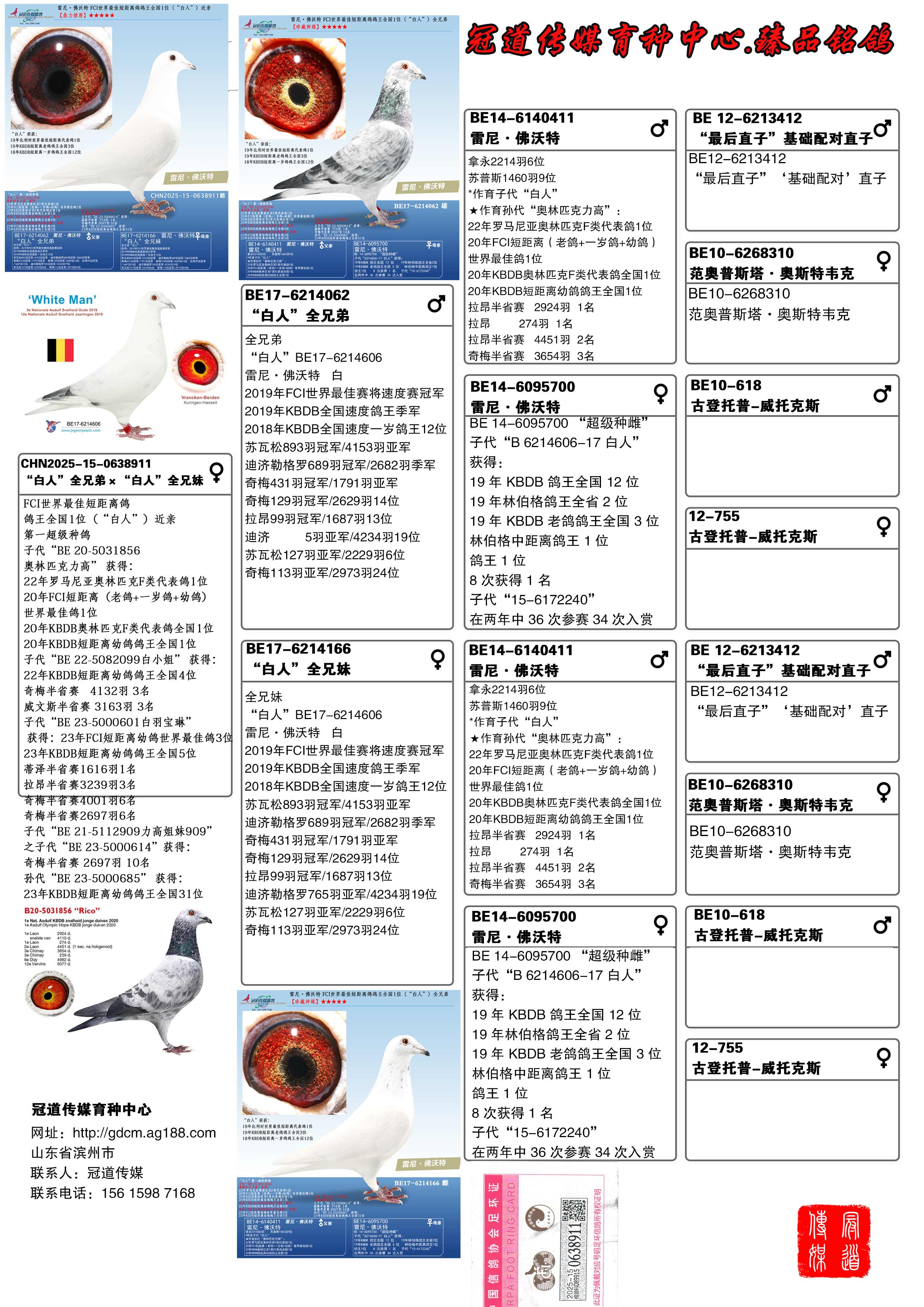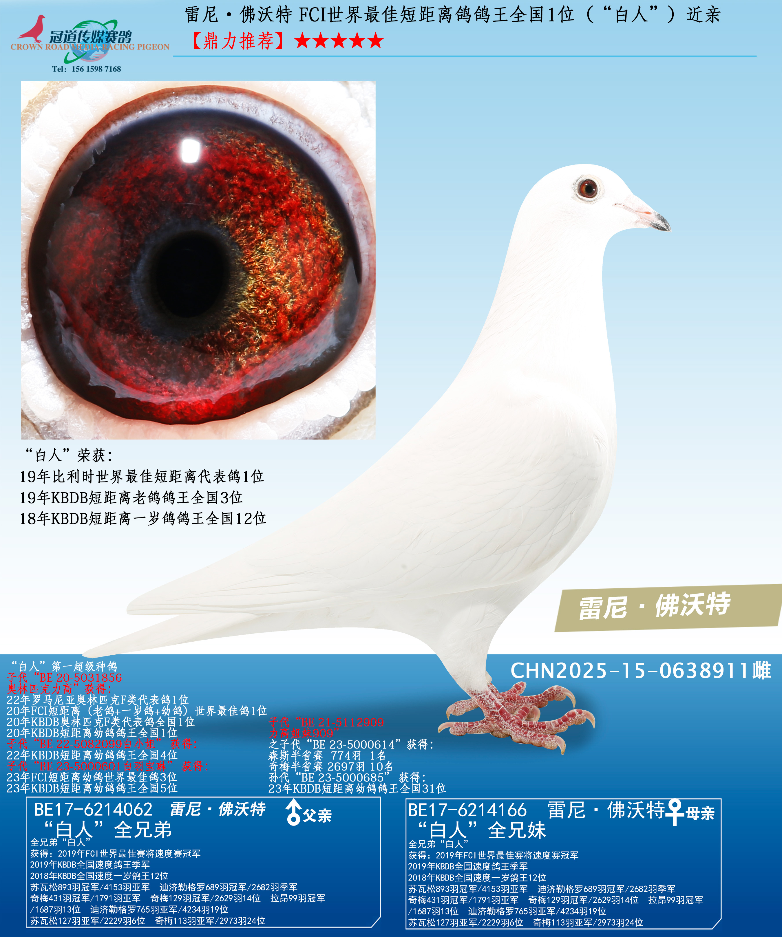 雷尼·佛沃特 FCI世界最佳短距离鸽鸽王全国1位(“白人”)