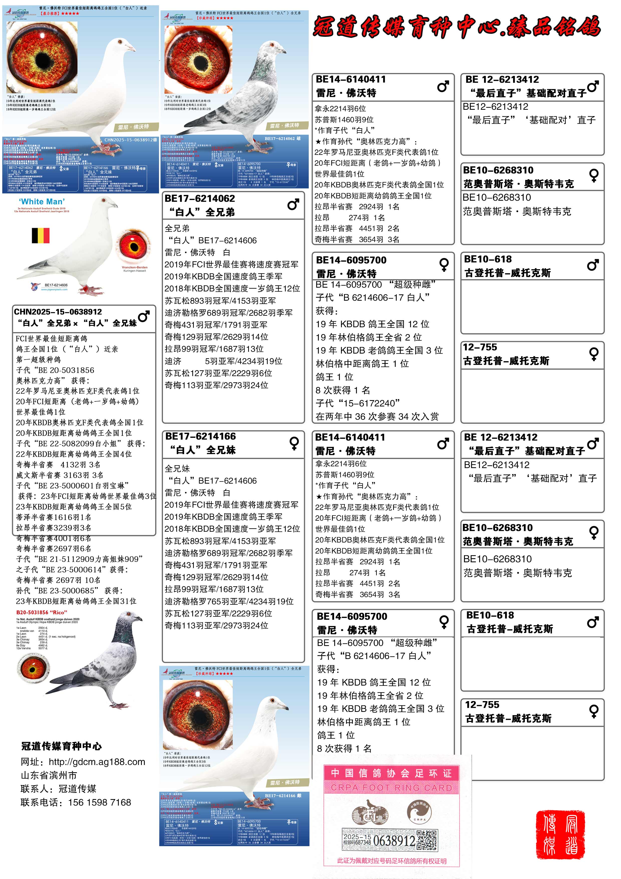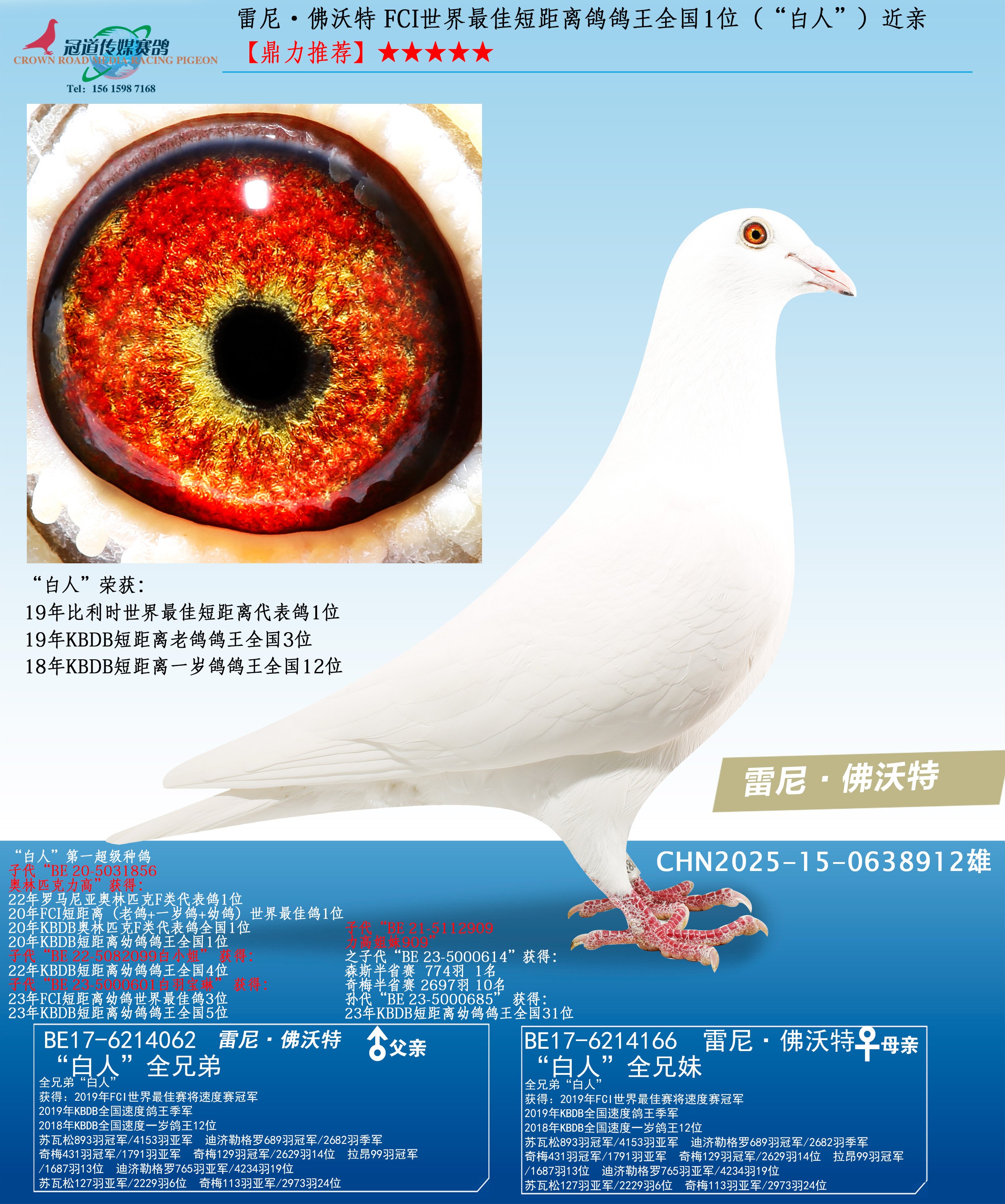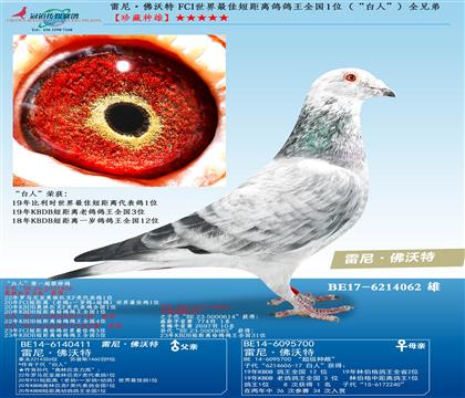 雷尼·佛沃特 FCI世界最佳短距离鸽鸽王全国1位(“白人”)