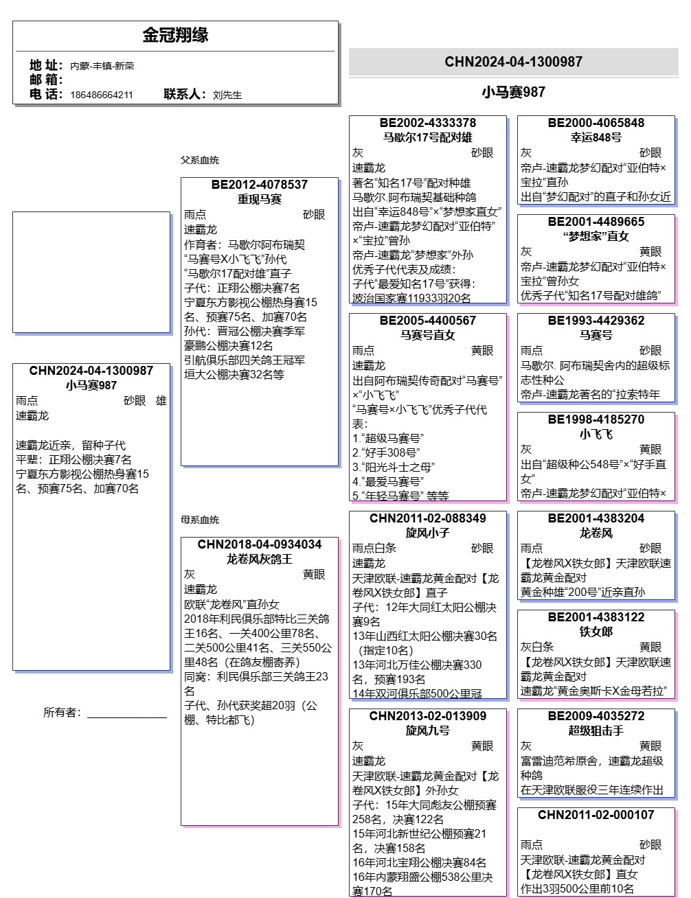 4.拍卖鸽友血统书的我们会全部上传,因为有非商业实战型鸽舍没有血统书,详细介绍都在照片说明中标注,所以有血统书和照片的我们会随鸽发走,没有血统书的,我们会发A4照片一张。