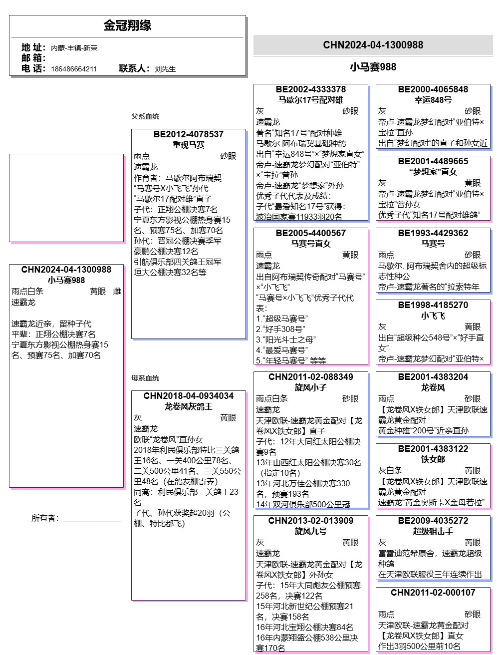 4.拍卖鸽友血统书的我们会全部上传,因为有非商业实战型鸽舍没有血统书,详细介绍都在照片说明中标注,所以有血统书和照片的我们会随鸽发走,没有血统书的,我们会发A4照片一张。