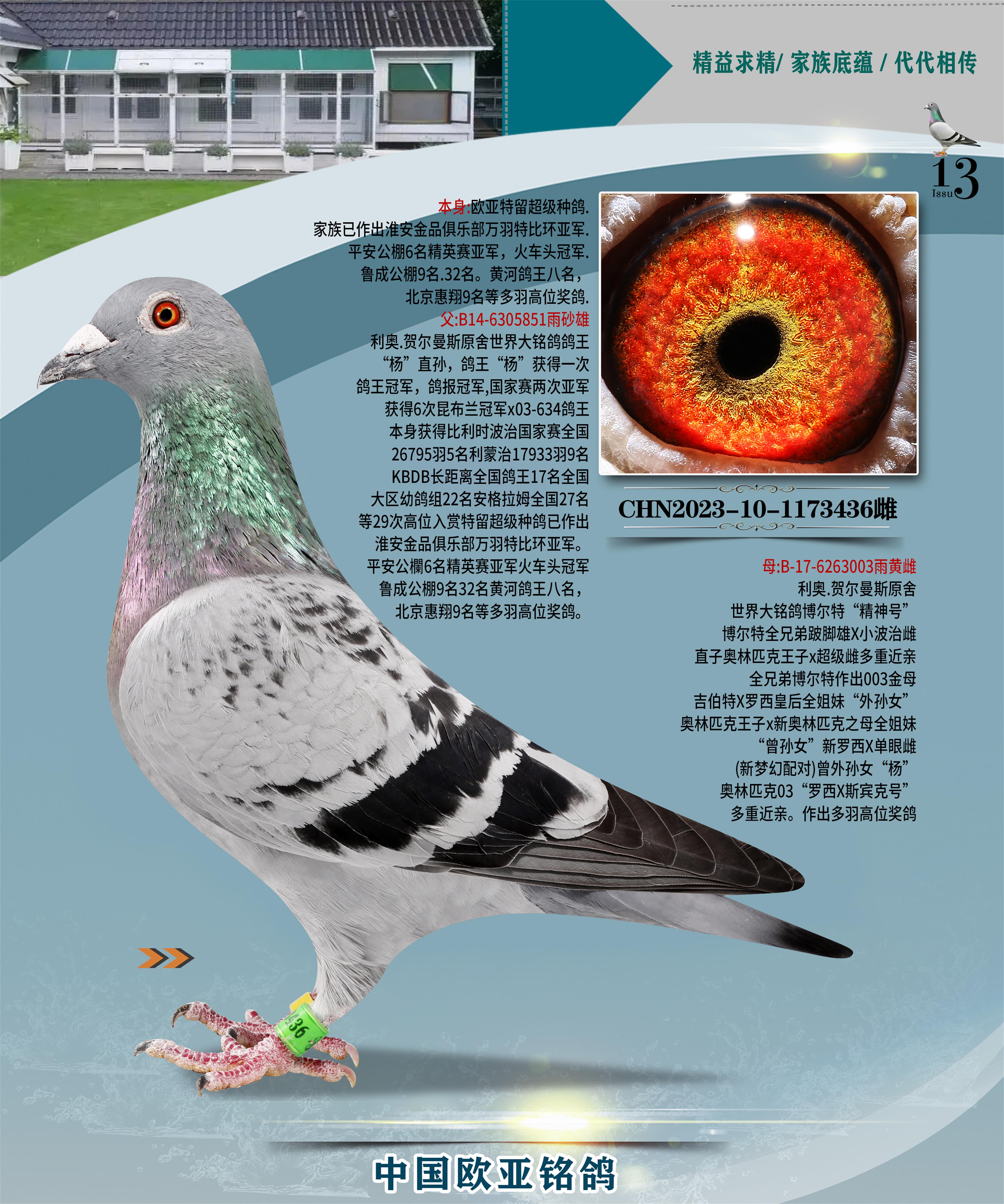 24年秋南京特比环欧亚荣获大团体冠军.小团体冠军551公里大特比13名.14名.16名.19名.20名.21名.24名.26名.27名.28名.42名.52名.54名.57名.65名.66名.68名.70名.71名.72名.74名.76名.80名.82名.83名.84名.85名.86名.90名.92名.110名.116名.121名.122名.128名.131名.158名.161名.164名.165名.166名.172名.174名.177名.182名.195名.196名.201名.205名.208名.210名.216名.253名.269名.275名.276名.294名.296名.299名,,24年秋云南天南铜都公棚决赛415名.天南铜都小棚决赛409名.云南玉活公棚决赛102名.490名.团体32名上笼二羽进二羽,天南铜都大棚506公里决赛445名。热烈祝贺河北省巨鹿县李兰生老师用欧亚泰山号血系连续十一年夺冠军,河北省国家赛冠军.全国季军等多次前十名高位,扬州王军王总用欧亚利奥24年春季获山东翔宇公棚决赛33名盖比53名。南京刘正龙刘总用欧亚盖比获得24年秋山东潍坊国际公棚决赛42名.精英赛30名.三关鸽王71名.决赛86名.加站赛16名.南京市特比环A组鸽王9名.B组鸽王5名.6名.C组鸽王5名.精英赛冠军4名.技能赛A组冠军4名.5名.秦淮区特比环荣获15名.46名.48名.87名。四川西昌徐亮徐总用欧亚利奥获得凉山州聚友决赛177名.第二关亚军双关鸽王19名.三关鸽王105名.云南豪庭公棚决赛603名。热烈祝贺24年四川重庆翔园鸽舍用欧亚泰山号荣获春季400公里冠军.秋季500公里冠军,河北王总用詹森X利奥获得千羽千翔公棚400公里冠军,广东蔡楷焕荣获24年秋爱好者 赛鸽俱乐部三关鸽王季军.一关420公里99名.二关450公里11名.三关520公里32名.单关季军.7名.12名,江西李卫兴荣获贵州红枫公棚8名.共翔俱乐部寄养棚四关综合鸽王30名.一关400公里78名.二关500公里55名.三关520公里37名.四关500公里57名.同父母获公棚18名.雷鸣获得武汉黄浦育翔中心冠军,四川陈文获得四川明鸿俱乐部300公里梦幻2名.3名.4名.9名.10名.13名.14名.15名.31名.34名.40名.41名.42名.43名.69名.71名.72名.73名.74名.94名.95名.97名.98名.99名.419公里决赛荣获总冠军7名.总共归巢9羽,四川徐亮获豪庭决赛603名,山西郑勇获得山西泰鑫公棚决赛255名詹森红狐,热烈祝贺马总获得开尔(飞跃队)决赛9名获奖金1310000万元.第一关52名,天津津福资赛180公里96名.获奖金429543万元,欧亚支持全国鸽友24年秋多人报喜 祝大家取得更好成绩,给欧亚报喜鸽友欧亚决定给每人赠送一羽超级种鸽。欧亚俱乐部特比环多关鸽王成绩:15年秋淮安特比环黑色星期一全会上笼9700多羽,当天无鸽归巢,第二天全会归巢357羽,本舍归巢158羽.前十名八羽.前一百名归巢57羽,16年春季获五关鸽王总冠军,总亚军四名.六名.七名.九名.十名.晶艺俱乐部520公里冠亚季军5名.6名.7名.9名.11名等,火车头冠军.季军6名.8名.9名.10名,16年秋晶艺俱乐部特比环520公里亚军.季军4名.6名.7名.9名,15年春南京白下特比环冠军.亚军.季军6名.7名.8名.9名.10名.指定鸽A B组获得冠军.亚军.季军4名.5名.,17年淮安特比环亚军.4名.5名.7名.8名.10名.六关鸽王总冠军.4名.6名.9名.10名,寄养棚宿迁刘总20羽特比环获冠军.季军.4名.7名.8名.9名等。18年荣获万羽特比环六关鸽王总冠军.总亚军.总季军.6名.8名.十名.单关四羽冠军.二羽亚军.四羽季军.前十名27羽。19年秋万羽特比环六关鸽王总亚军.总季军.5名.8名等,单关二羽冠军.三羽亚军.一羽季军前十名31羽。20年秋淮安市鸽会四关特比环大赛风雨无阻鸽王亚军.鸽王六名,金品俱乐部万羽特比环六关鸽王总冠军,总亚军.四名.五名.六名.七名.八名.十名.前二百名鸽王35羽,单关冠亚季军前十名四十多羽,火车头五关鸽王季军.六名.八名.前二百名鸽王十七羽。20年春荣获淮安五区一市四关鸽王总冠军.亚军.四名.八名.九名。21年秋荣获金品万羽特比环大赛六关鸽王总亚军.总季军.四名.七名.九名.十名.单关冠亚军季军前十名三十多羽。火车头协会鸽王六名.七名.十名.单关前十名十七羽。22年秋荣获鸽王总冠军.总亚军.5名.7名.8名.9名.11名.单关冠亚季军前十名三十多羽,第一关单关前二百名四十多羽,第二关前二百名三十多羽,第三关前二百名四十多羽,第四关前二百名四十多羽,第五关前一百名53羽。23年秋荣获鸽王季军.五名.八名.十名.13名.17名.20名.27名等多羽鸽王.单关前十名二十多羽。公棚.寄养棚部分成绩:16年秋宁夏黄河公棚总冠军电脑戈马力指定通炮冠军,17年送八羽参赛获得鸽王八名进奖四名,支持韩总荣获八名。支持鸽友荣获宁夏中卫公棚决赛总冠军.精英赛冠军,支持18年宁夏黄河公棚决赛冠军詹森X泰山。安徽鼎博寄养棚院内外四关鸽王总冠军.鸽王十七名.三十七名同窝,鸽王39名.42名.58名.67名。18年山东公棚预赛冠军.决赛65名.送八羽进奖五羽.指定获奔驰汽车一辆。支持鸽友获得云南蓝云公棚冠军.盖比X佛卡门。支持鸽友荣获云南银集公棚决赛冠军 詹森427X520血系 速度赛6700羽冠军。17年荣获金马俱乐部寄养棚四关鸽王总冠军.季军.六名.八名.第一关冠军.亚军.季军四名.七名.十一名.金牌教练奖。支持鸽友18年北京费翔公棚预赛九名电脑X桑杰士,支持鸽友荣获陕西威力公棚决赛11名.内蒙古临河寄养棚四关鸽王六名.詹森配泰山,支持河北王总用欧亚詹森427配胡本喜获20年秋开尔青年棚季军。云南东荣公棚16年预赛冠军.决赛77名.17年决赛12名.詹森红狐X泰山,17年平安公棚决赛4名 詹森427。欧亚获得21年金母寄养棚第一关四名.第二关5名.第三关5名.6名.7名.10名.三关鸽王总冠军,四关鸽王14名.十羽鸽王。支